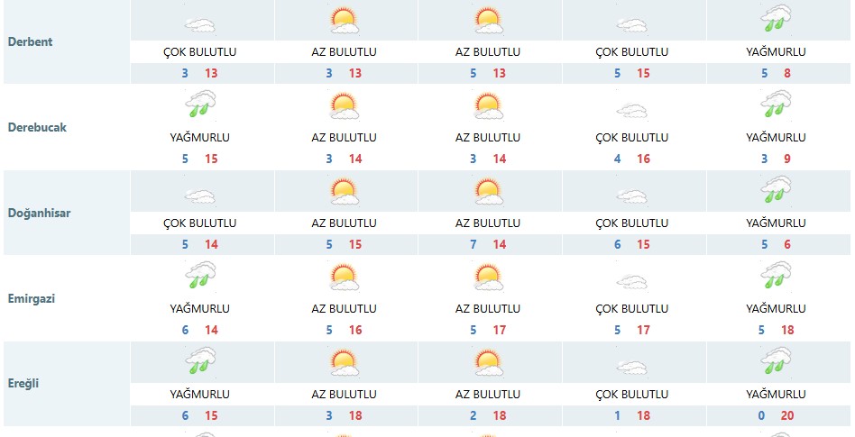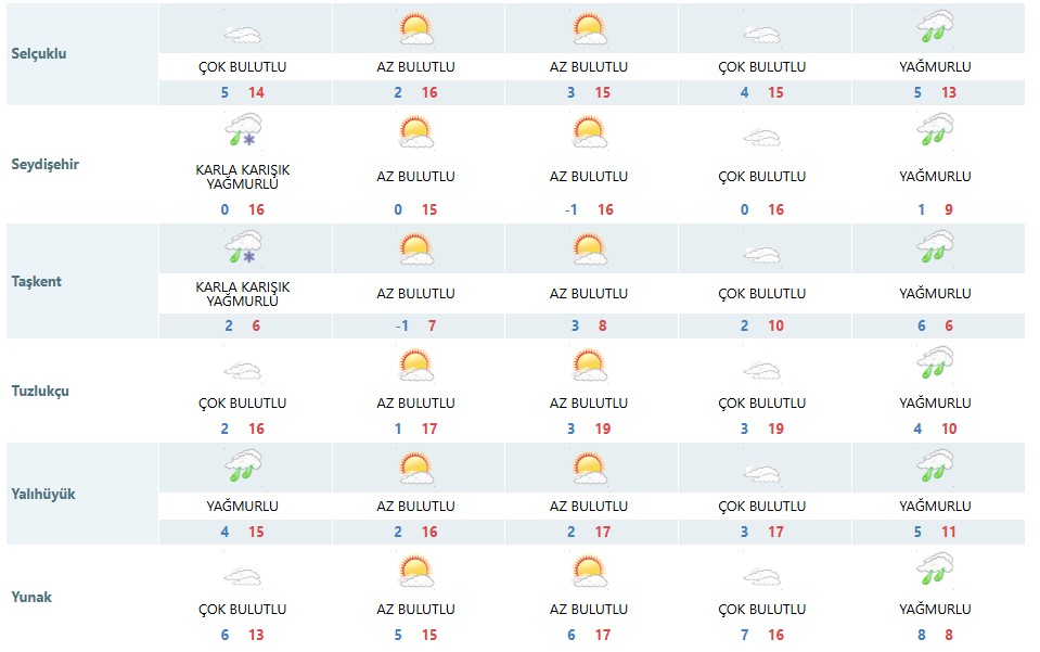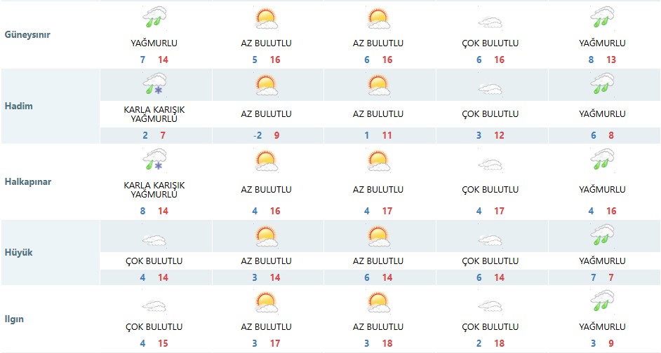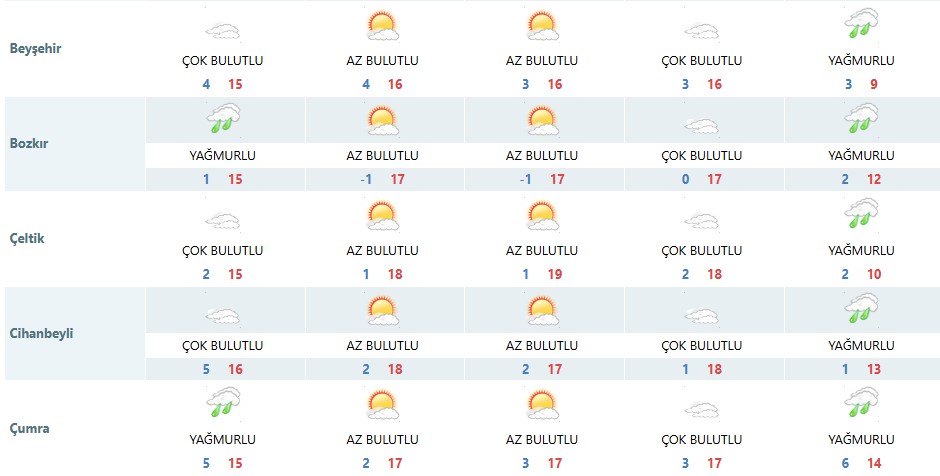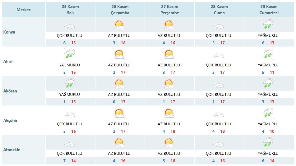 KONYA 5 GÜNLÜK HAVA DURUMU