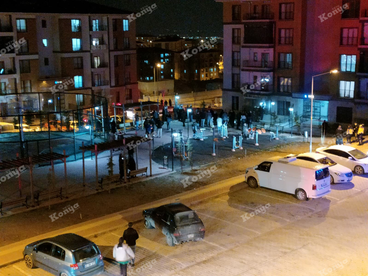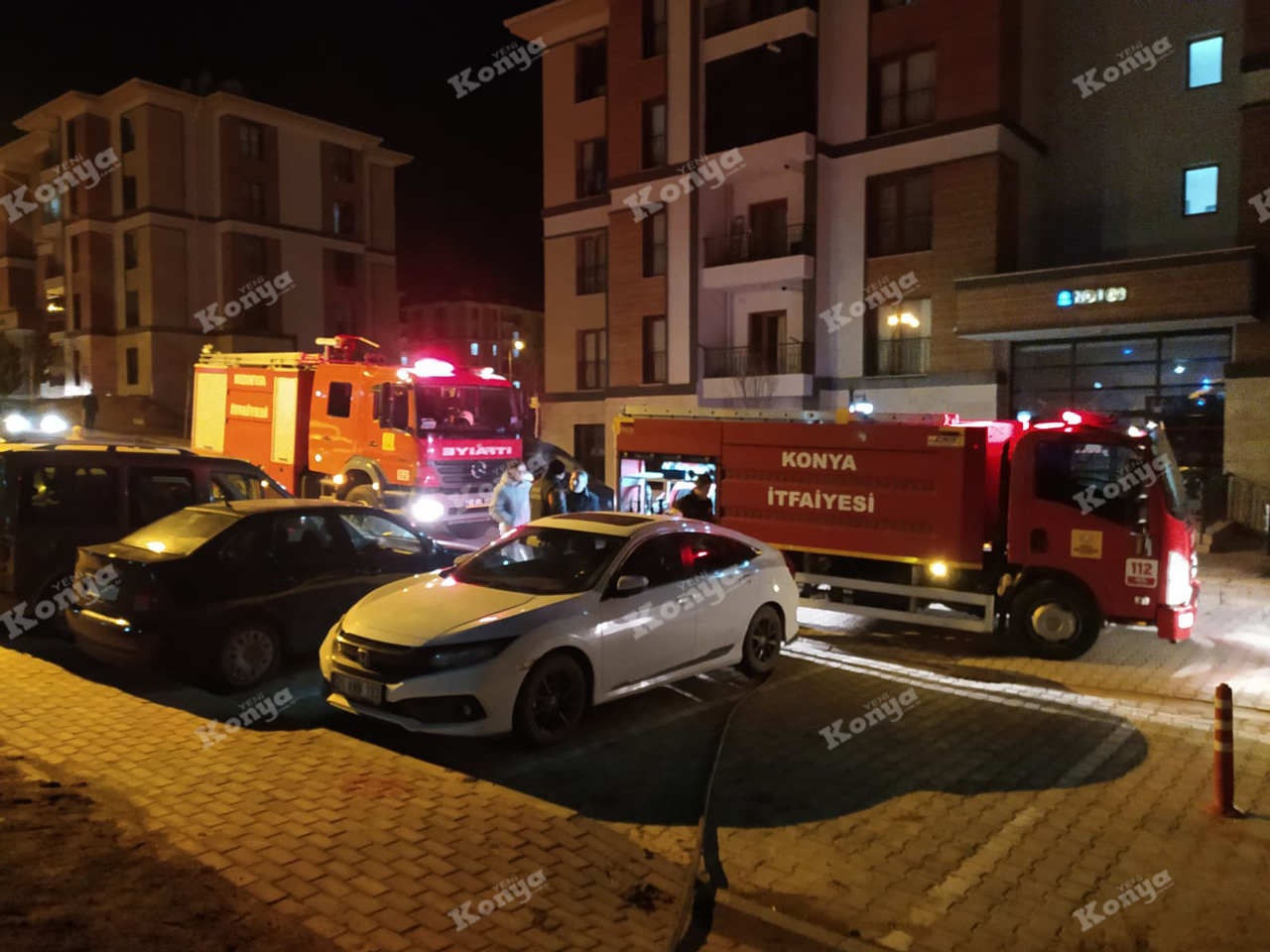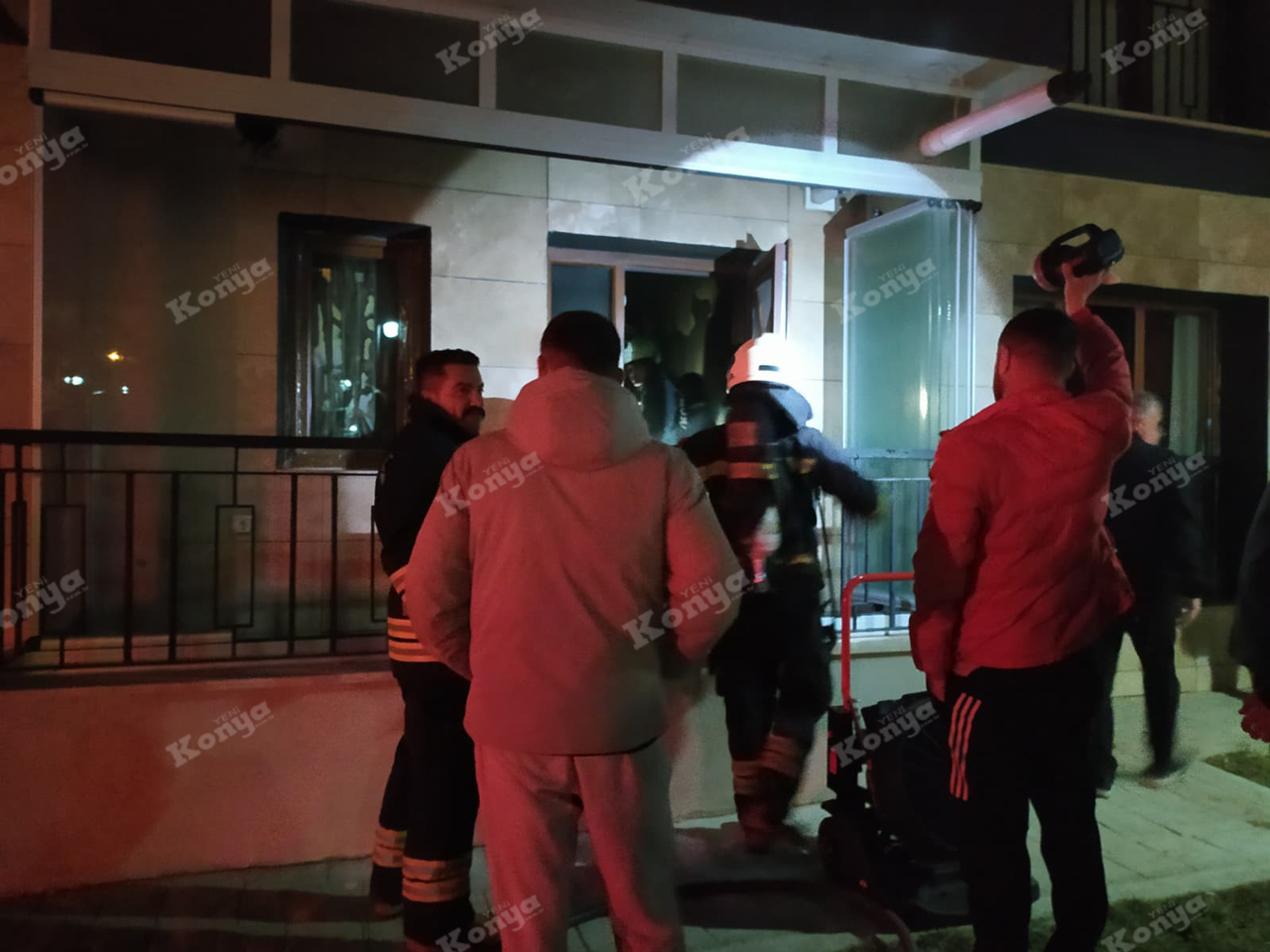Konya'da Akademi Mahallesi Ardıçlı TOKİ Konutları H4 Blok'ta zemin katta çıkan yangın mahallede kısa süreli paniğe neden oldu.
