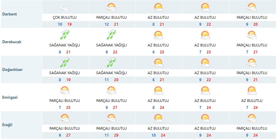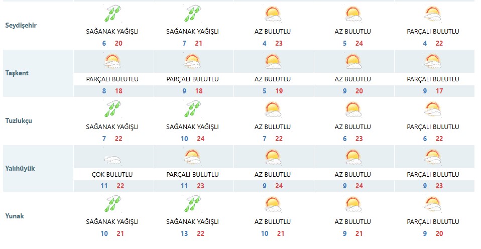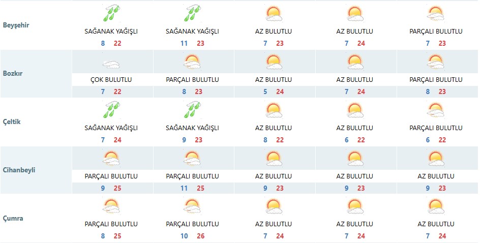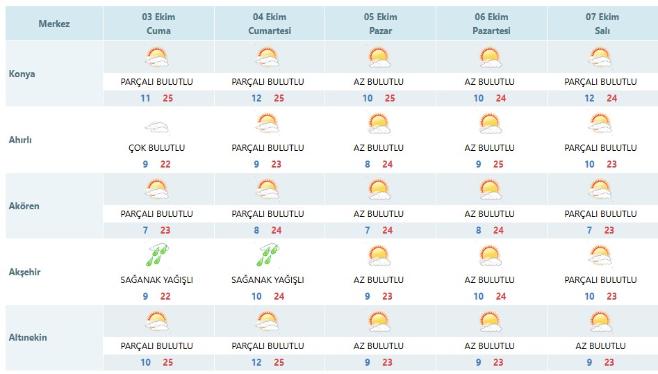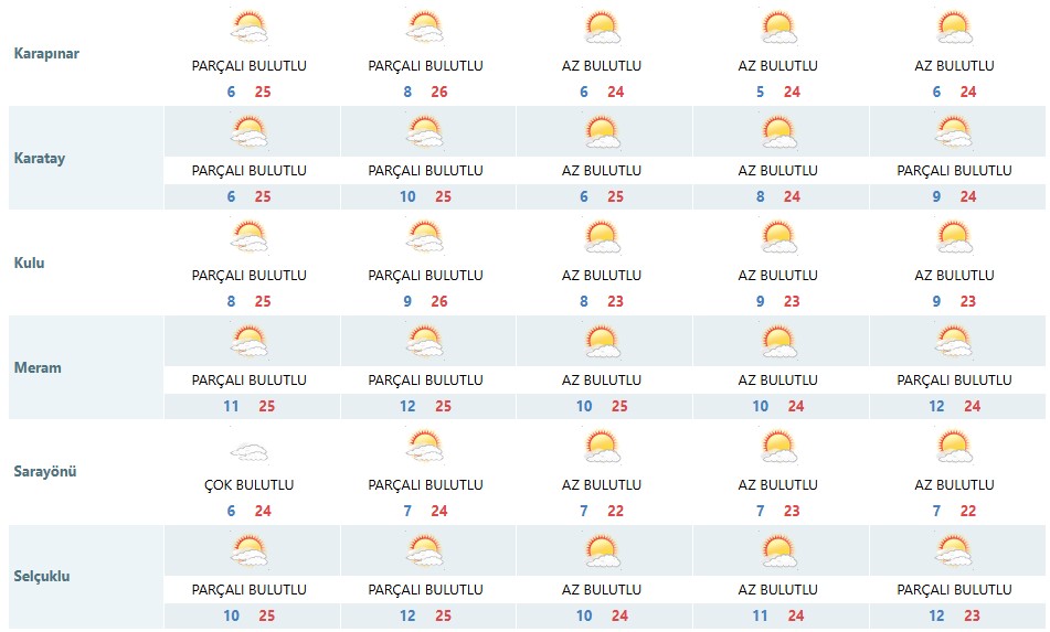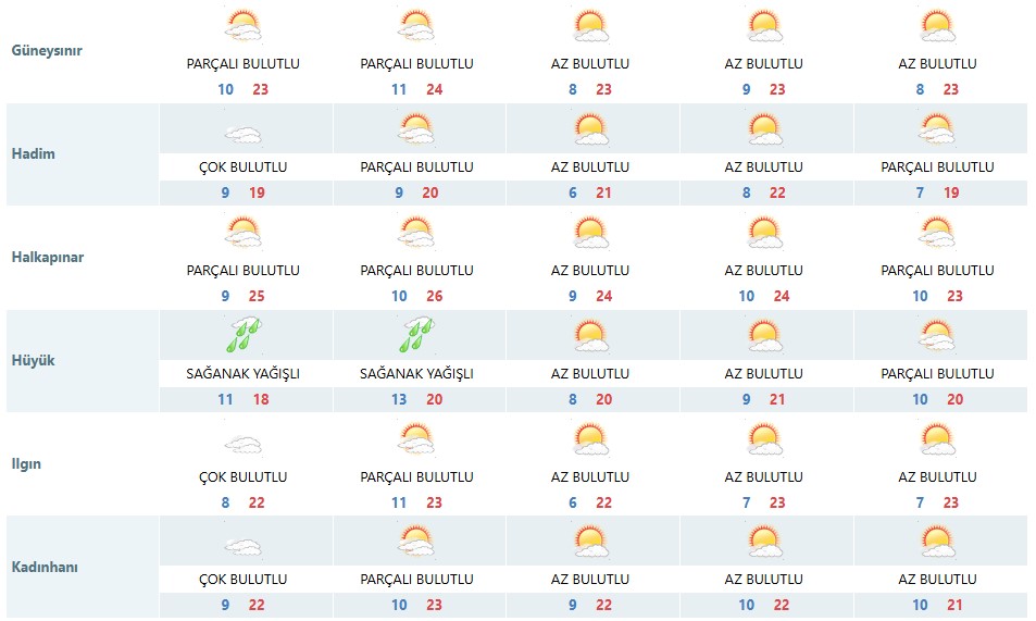 Meteoroloji Genel Müdürlüğü'nden alınan bilgilere göre Konya için 5 günlük hava durumu tahmini:
