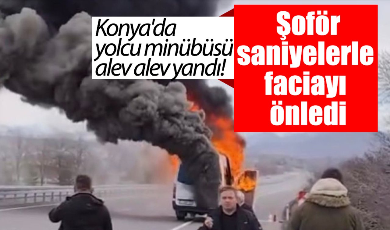 Konya’da alevler yolcu minibüsünü sardı! Şoför saniyelerle faciayı önledi