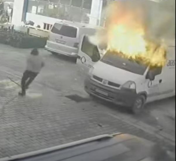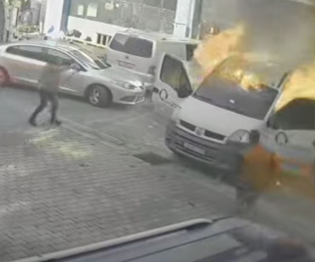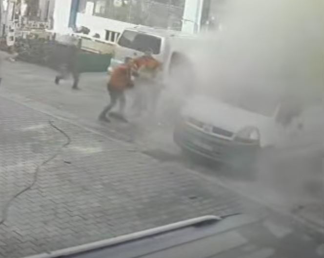 Yaşanan panik ve yangın müdahalesi, çevredeki güvenlik kameraları tarafından anbean kaydedildi.