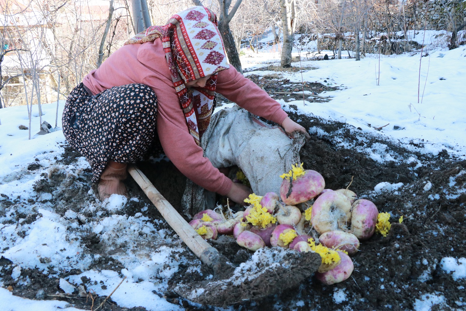 Bölgede yaşayanlardan bazıları, yaz aylarında hasadı yapılan sebzeleri, kış boyunca tüketebilmek için toprak altına gömerek muhafaza ediyor.