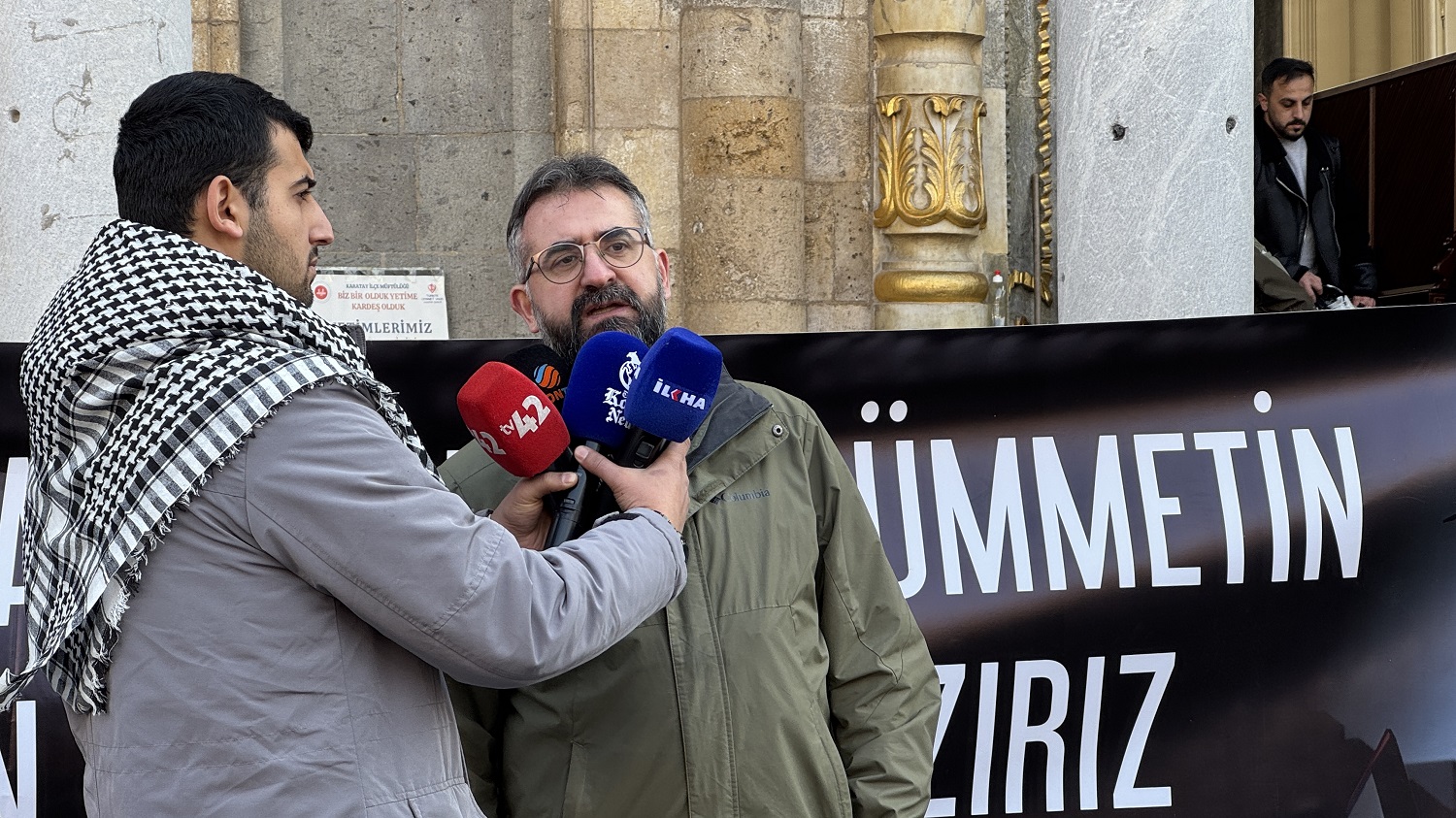 Konya Sivil Toplum Kuruluşları Platformu Başkanı Adem Ceylan, Aziziye Camisi önünde cuma namazı çıkışında toplanan kalabalığa seslenerek, Gazze'dekilerin Kudüs'ü kurtarmak için mücadele verdiğini söyledi.