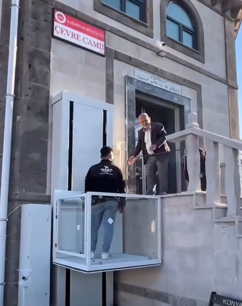 Konya'nın Karapınar ilçesinde bulunan Çevre Camii'ne asansör yapıldı.