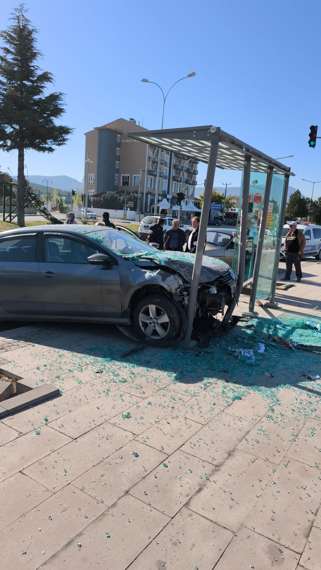 Çarpmanın şiddetiyle savrulan 42 AFP 795 plakalı otomobil yol kenarındaki otobüs durağına çarptı. Kazada durakta otobüs bekleyen E.K. yaralandı. İhbar üzerine kaza yerine sağlık ve polis ekipleri sevk edildi.