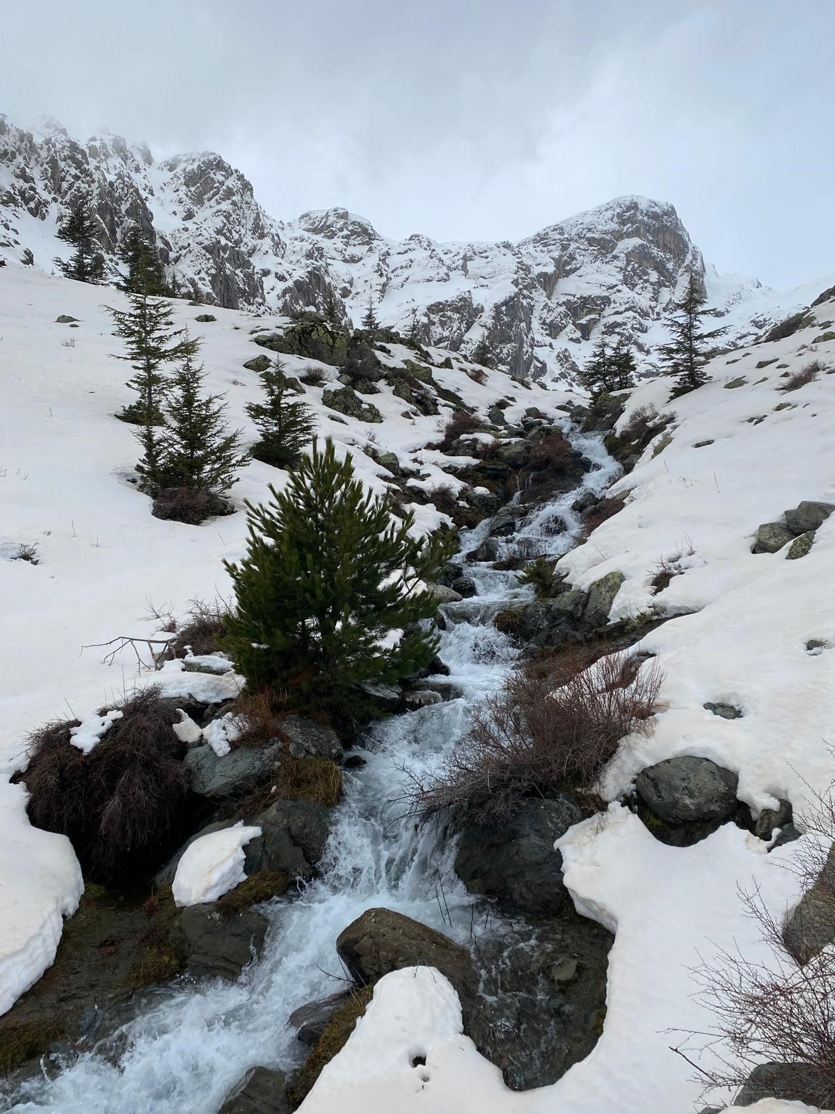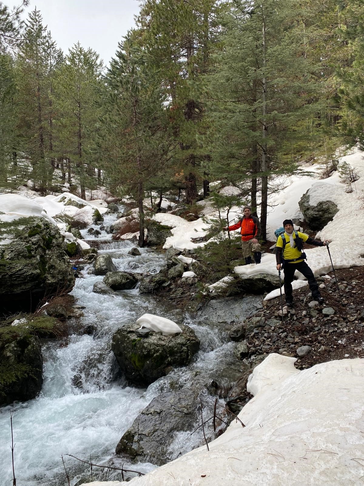 Beyaz örtüyle kaplanan yaylada, yağmur ve eriyen kar sularıyla canlanan su kaynakları çevresinde yürüyüş yapan doğaseverler, etkileyici görüntüler yakaladı.