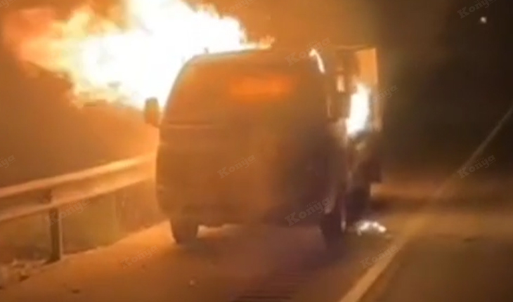 Konya'nın Kulu ilçesinde ev eşyası taşıyan kamyonet alevlere teslim oldu. Yangın itfaiyenin müdahalesi ile söndürüldü.