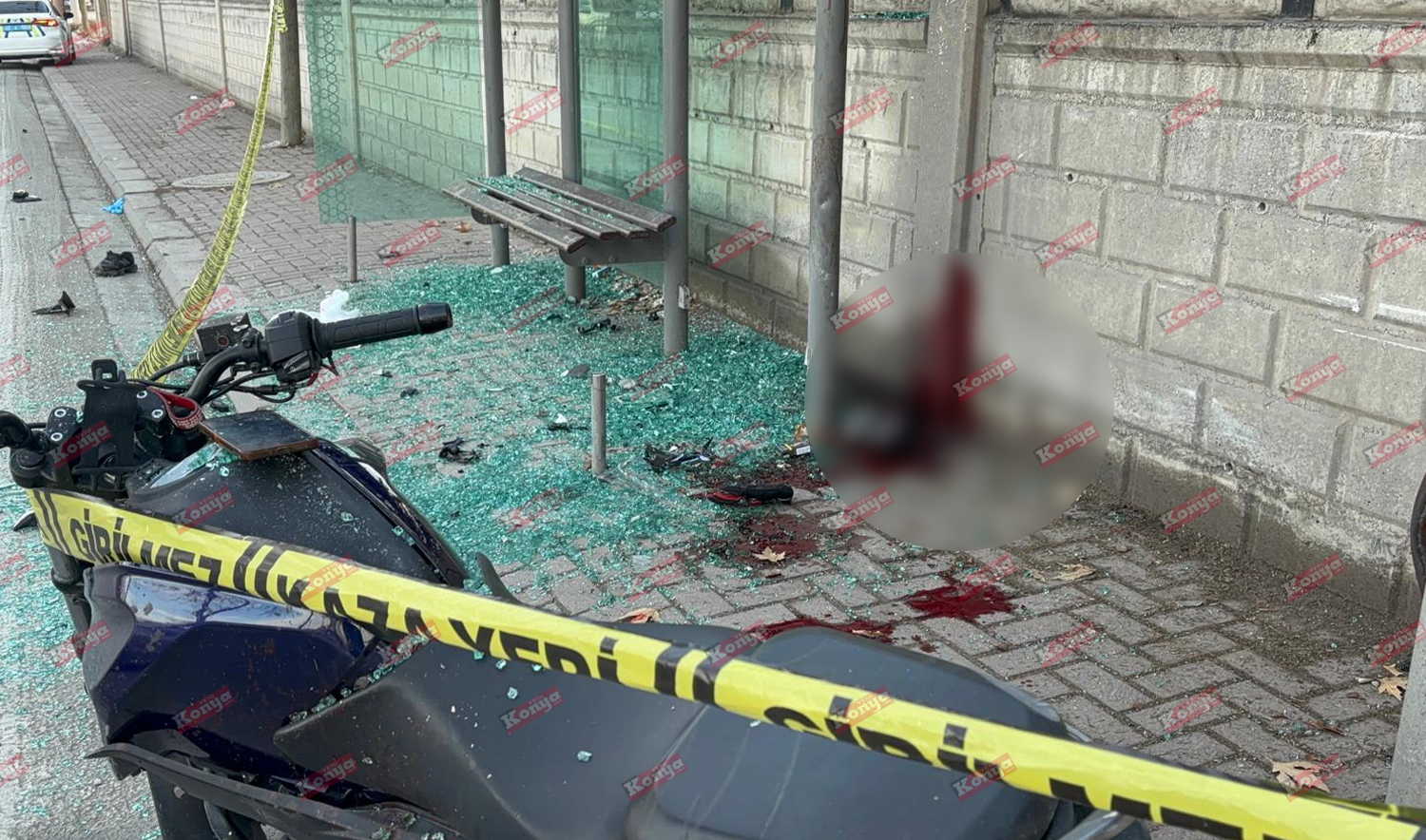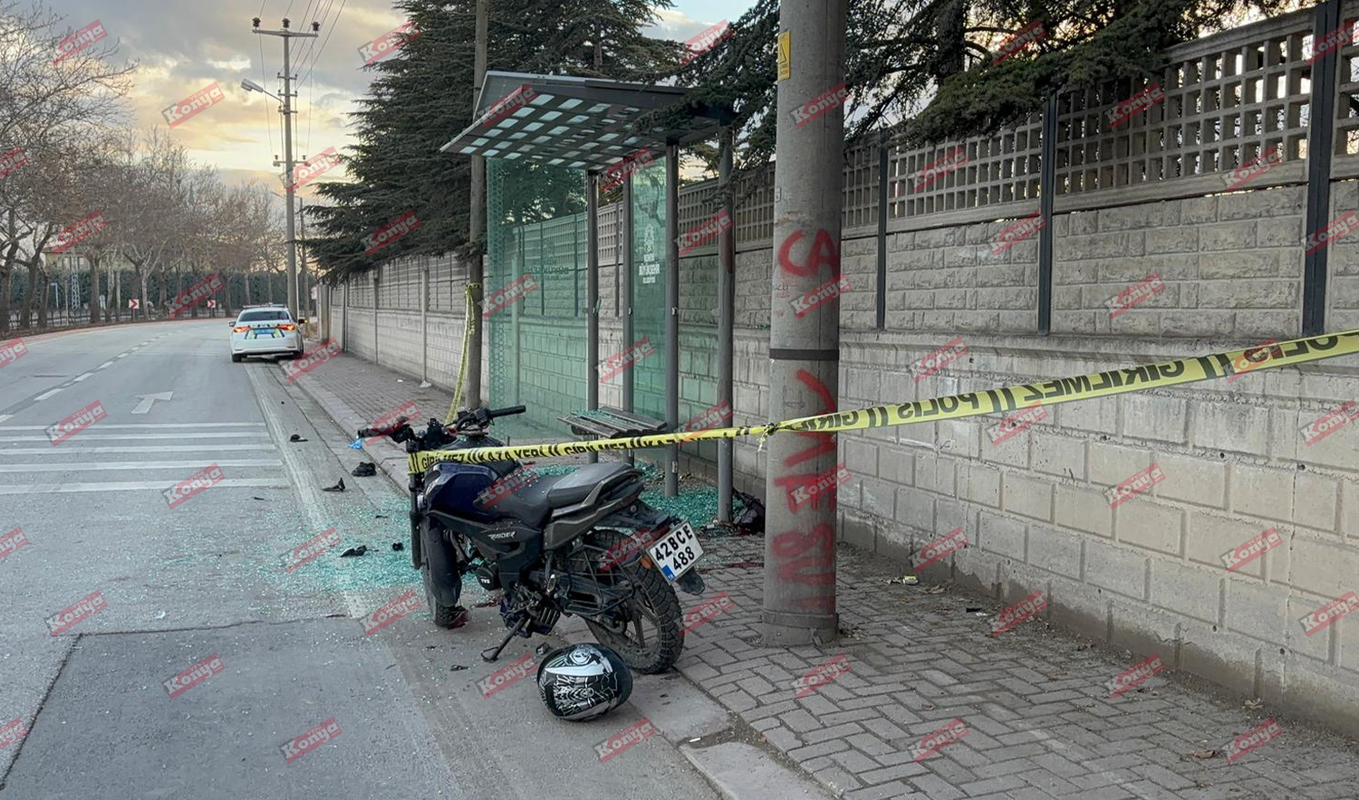 Konya'nın Meram ilçesi Hatıp Caddesi üzerinde meydana gelen trafik kazasında, 17 yaşındaki M. A. motosiklet sürücüsü virajı alamayarak otobüs durağına girdi. 42 BCE 488 plakalı motosikletin sürücüsü kazada ağır yaralandı.