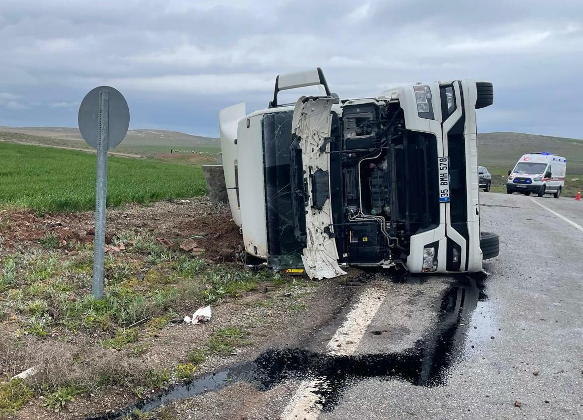 Alınan bilgiye göre, M. A. (52) idaresindeki 35 BMH 578 plakalı tır, sürücünün direksiyon hakimiyetini kaybetmesi sonucu kontrolden çıkarak yol kenarına devrildi.