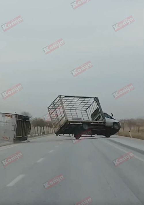 Kamyonetin kasası ise karşı şeritte seyir halindeki başka bir aracın üzerine düştü. Olayda büyük panik yaşanırken, trafikte kısa süreli aksama meydana geldi.