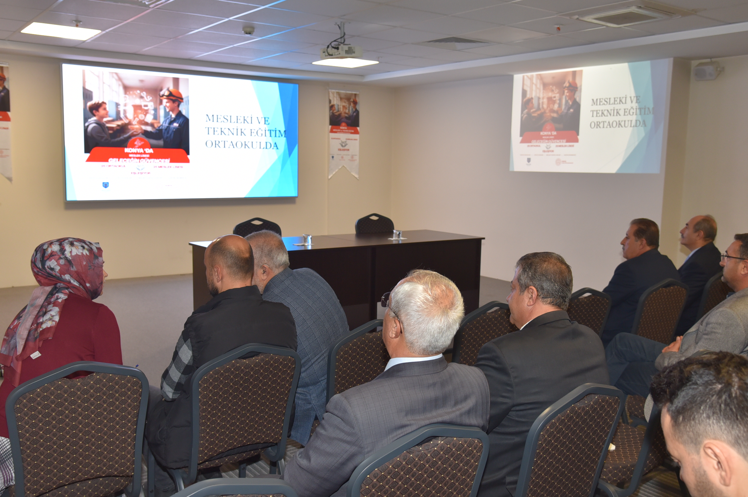 Konya İl Milli Eğitim Müdürlüğü tarafından hazırlanan “Konya Mesleki ve Teknik Eğitim Ortaokulda“ projesinin tanıtım toplantısı, 24 Ekim 2025 tarihinde İl Müdürlüğü Toplantı Salonunda gerçekleştirildi.