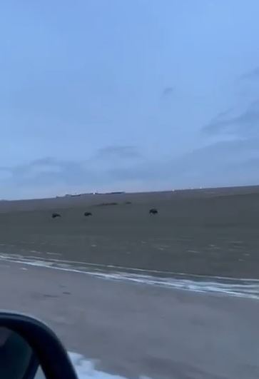 Yeniceköy Mahallesi mevkiinde seyir halinde olan bir sürücü, yol kenarına kadar inen devasa domuz sürüsünü cep telefonu kamerasıyla kaydetti. Görüntülerde, çok sayıda domuzun yerleşim alanlarına oldukça yakın noktalarda dolaştığı görüldü.