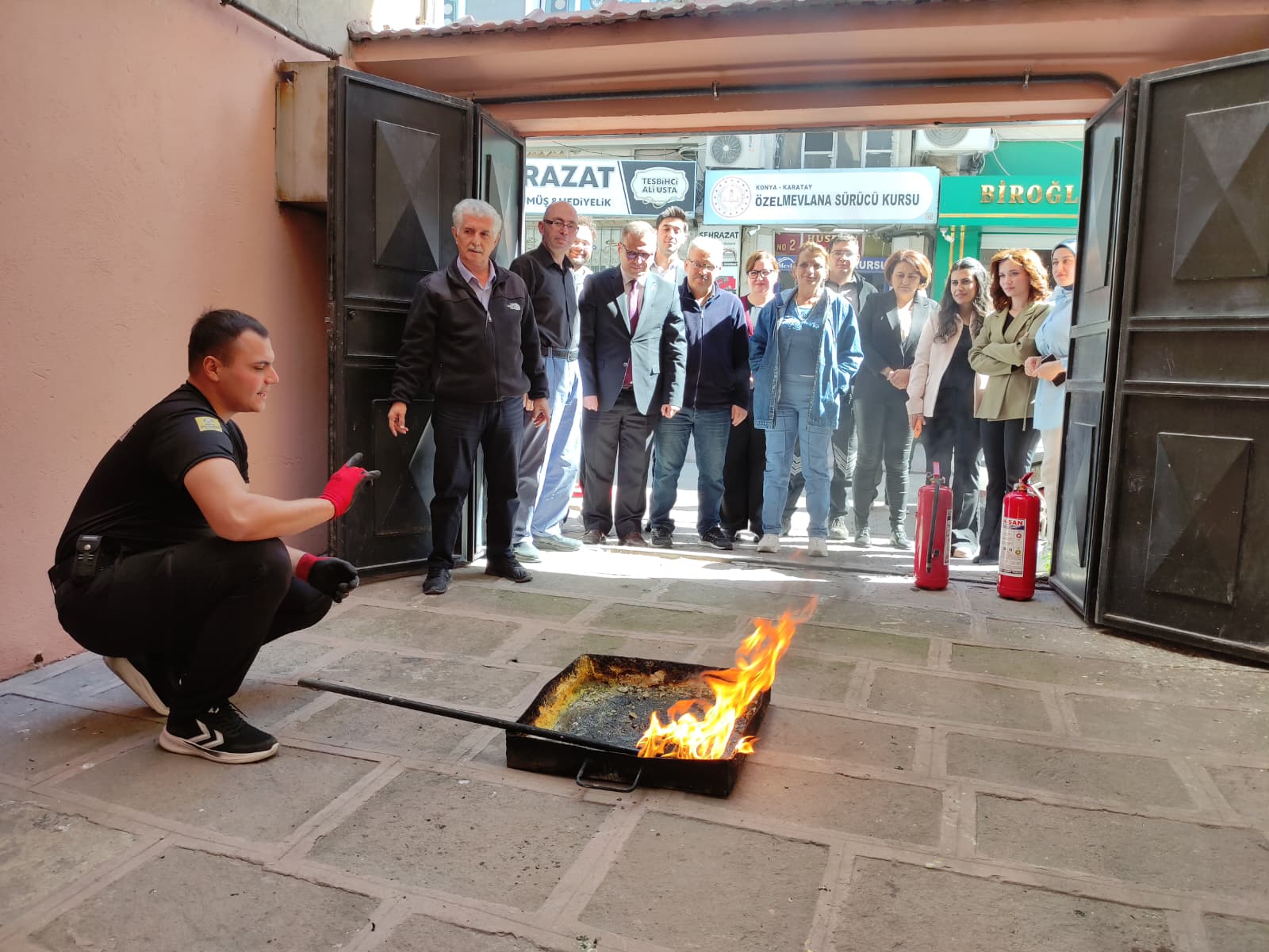 Cumhurbaşkanlığı İletişim Başkanlığı Konya Bölge Müdürlüğü personeline, yangına müdahale eğitimi verilerek, kurum otoparkında yangın söndürme tatbikatı gerçekleştirildi.