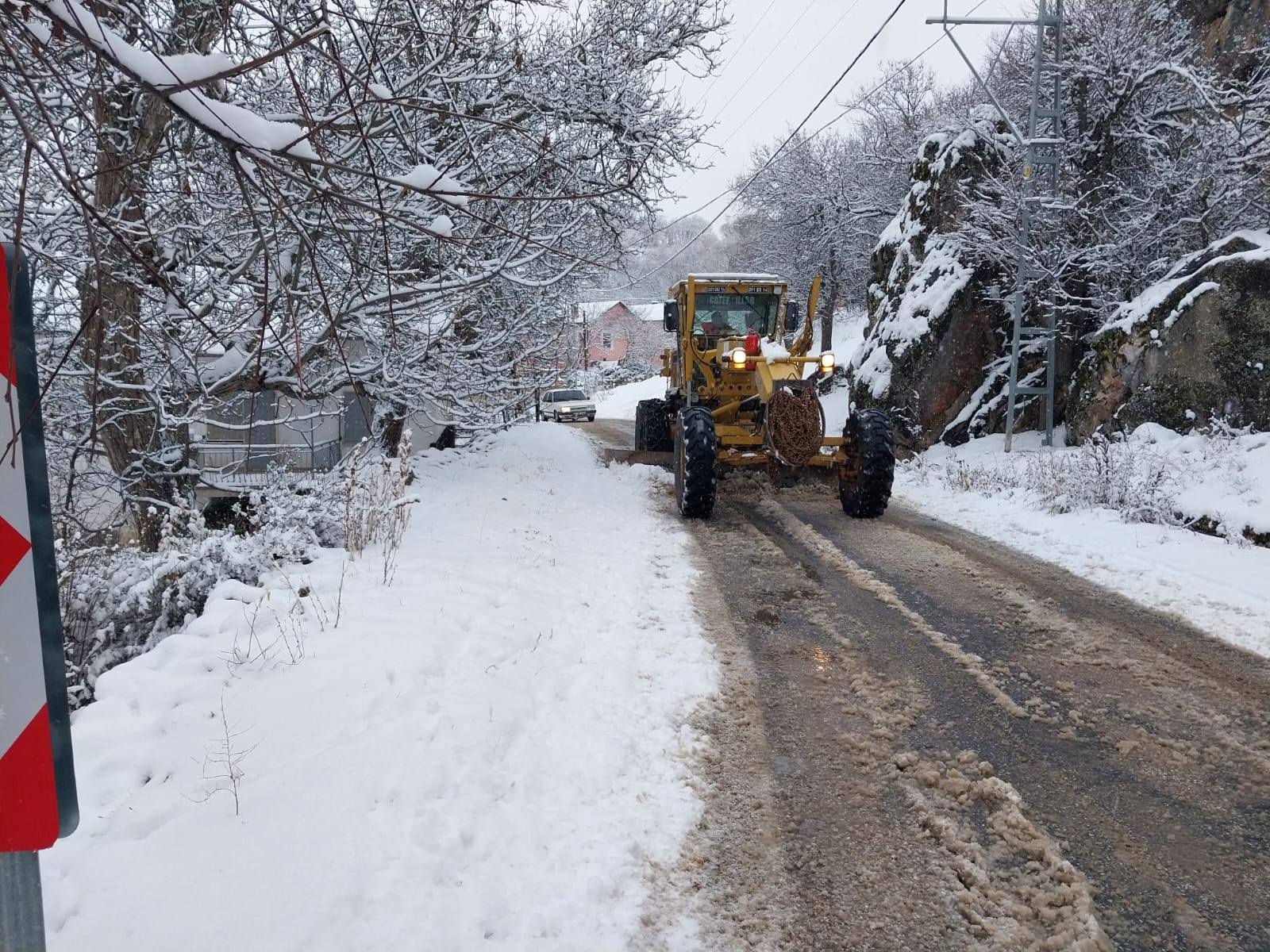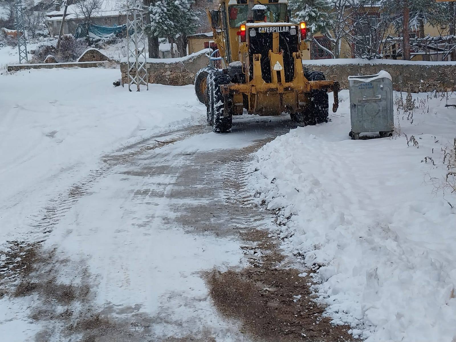 Özellikle kırsal mahallelerde ve dağlık kesimlerinde yoğunlaşan kar yağışı nedeniyle araçların güvenli şekilde seyahat edebilmesi için greyder ve kar küreme araçları görev başında.