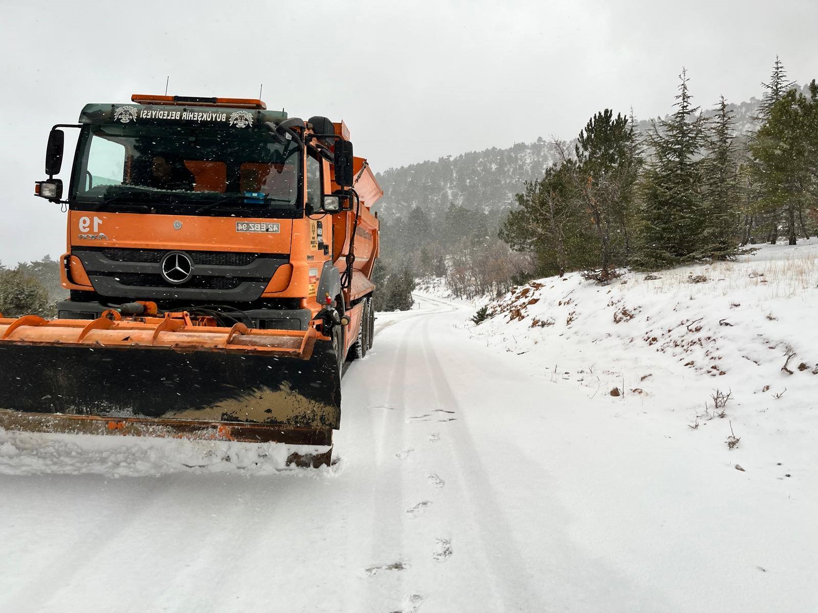 Kar yağışının etkili olduğu bölgelerde Konya Büyükşehir Belediyesi Kar-Kış ve Ulaşım Koordinasyon Merkezi ekipleri, yolların ulaşıma açık kalması için 7/24 çalışmalarını sürdürüyor.