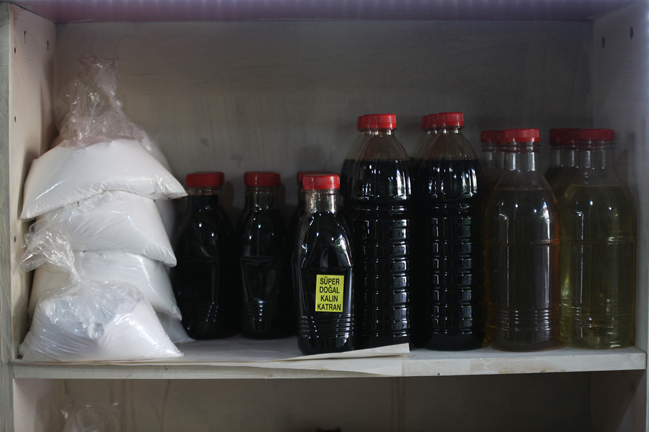 Katrancılığı devam ettirdiğini anlatan esnaf Nafiz Ünalacak, "Rahatsızlanınca ameliyat geçirdiğim için mahdum Tevfik Ünalacak'a devrettim, o yürütüyor. Ben burada fahri olarak ona yardımcı oluyorum. Öyle devam ediyoruz. Aşağı yukarı 15 yaşında başladık. Dükkanı kapatmamak için oğluma devrettim. İşe devam ediyor. Katran, zift, makineye vesaire satardık. Şimdi biraz baharat, sedir katranı, onlara da devam etmeye başladık. İnsanlara faydalı olsun diye. Katranlar çeşitli... Hayvanlara kullanılan katranlar var. Koyun, kuzu, inek, dana, şap hastalığına kullanılıyor. Sonradan da insanlar için de sedir katranı olarak tavsiye ediyoruz. Akciğere, nefes darlığına, iç hastalıklarına faydalı bir şey. Kullanımı su bardağına bir iki damla damlatarak içilebiliyor. Faydasını da görenler birbirine tavsiye edip geliyor. Eskiden satıyorduk. Lastik sanayinde kullanılıyordu. Lastik fabrikaları zaman aşımında teknoloji ilerlediği için ayakkabıya döndü. Eskiden lastik ayakkabı kullanılıyordu, katranlar hamur içine giriyordu madde olarak. Fabrikaların çoğu kapattı. Yani teknoloji yürümedi. Yeni yeni ayakkabılara kullanmaya başladılar. Sonra hayvancılıkta kullanılıyor. Hayvan hastalıklarına, yarasına, beresine o şekil devam ediyor" dedi.