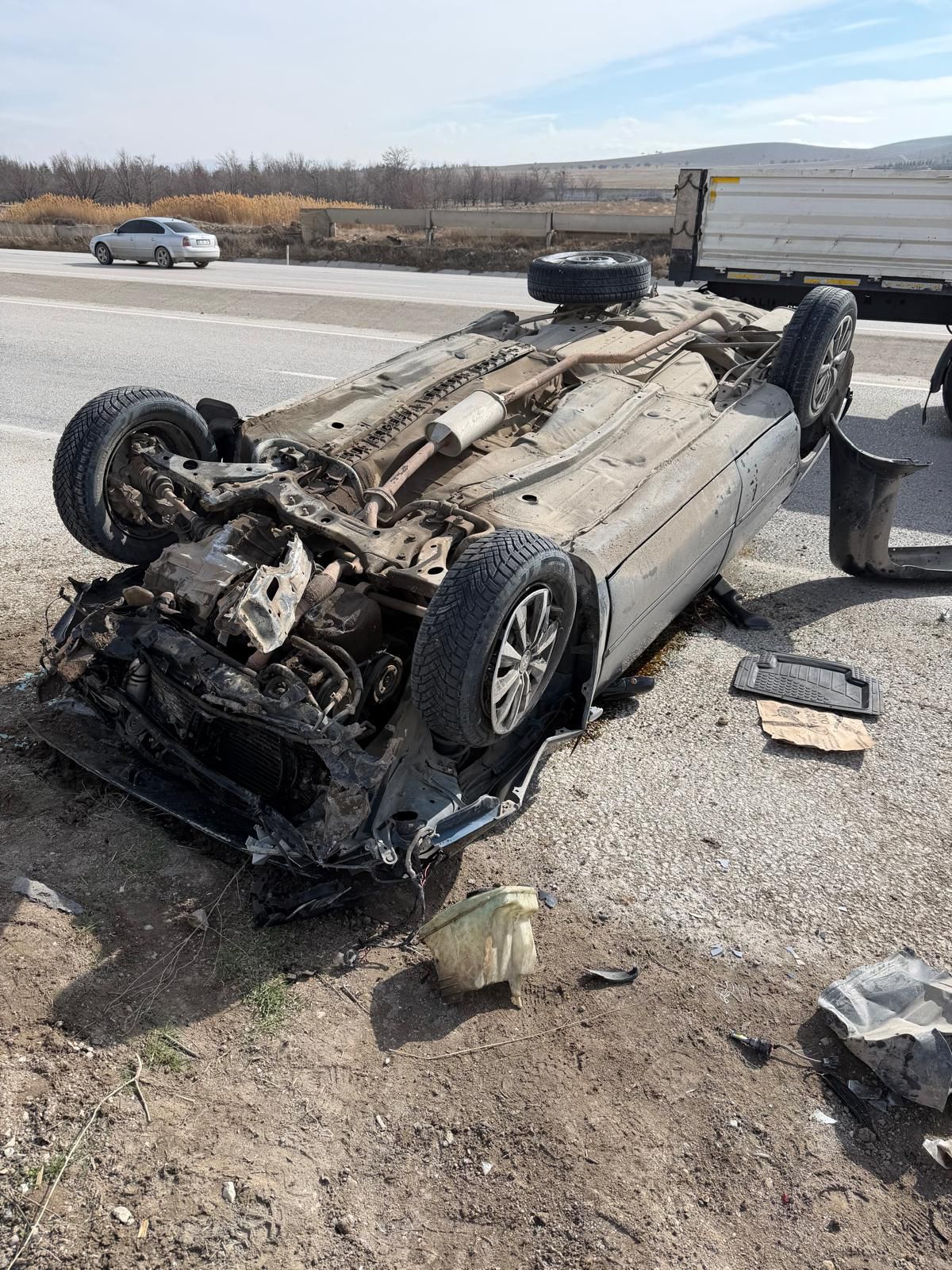Takla atan otomobilin sürücüsü Zeynel Tolunun kazada yaralandı.