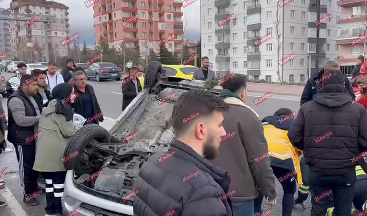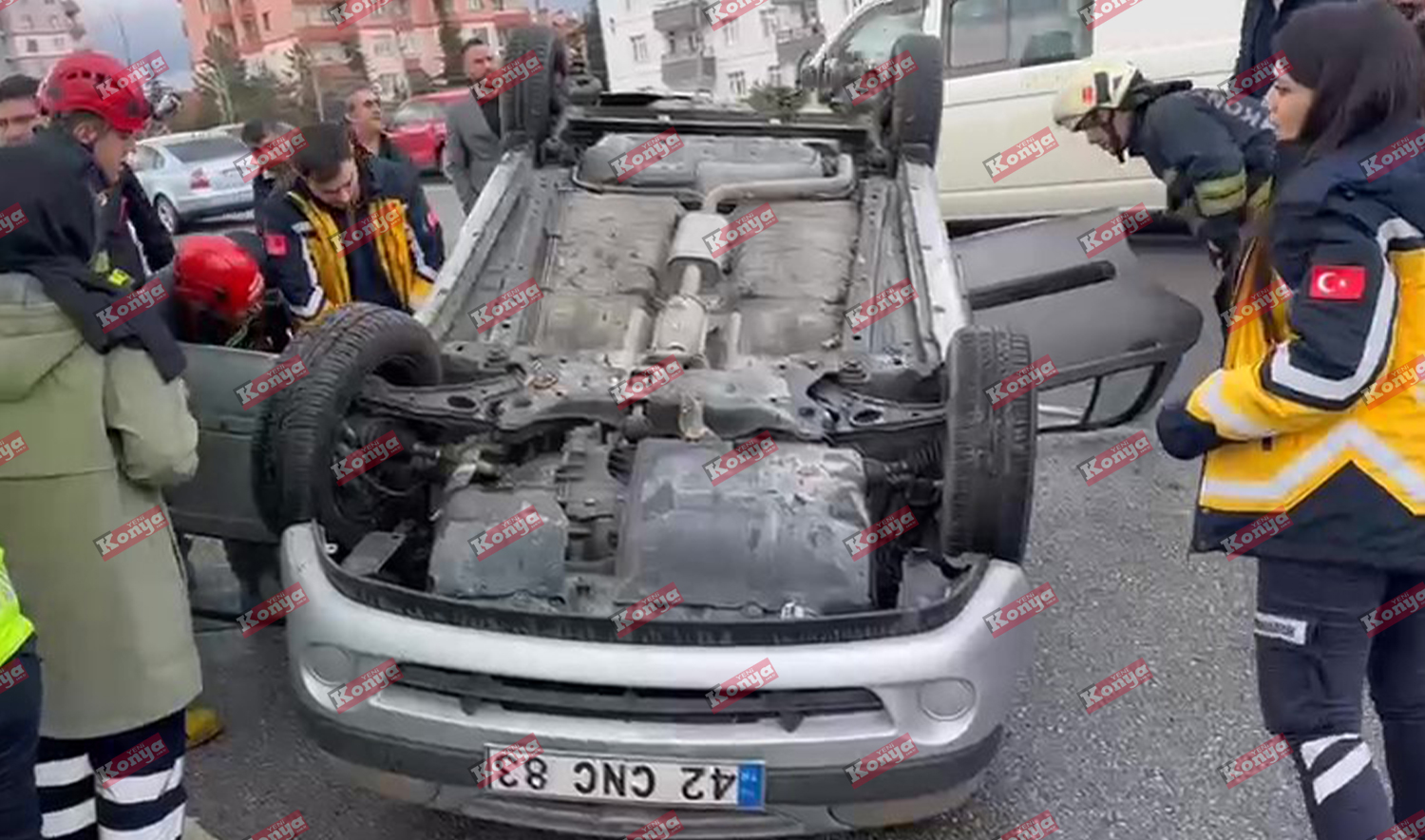 Konya'nın Selçuklu ilçesinde meydana gelen trafik kazasında direksiyon hakimiyetini kaybeden sürücünün kullandığı otomobil ters döndü. Kazada araçta bulunan anne ve kızı yaralandı.