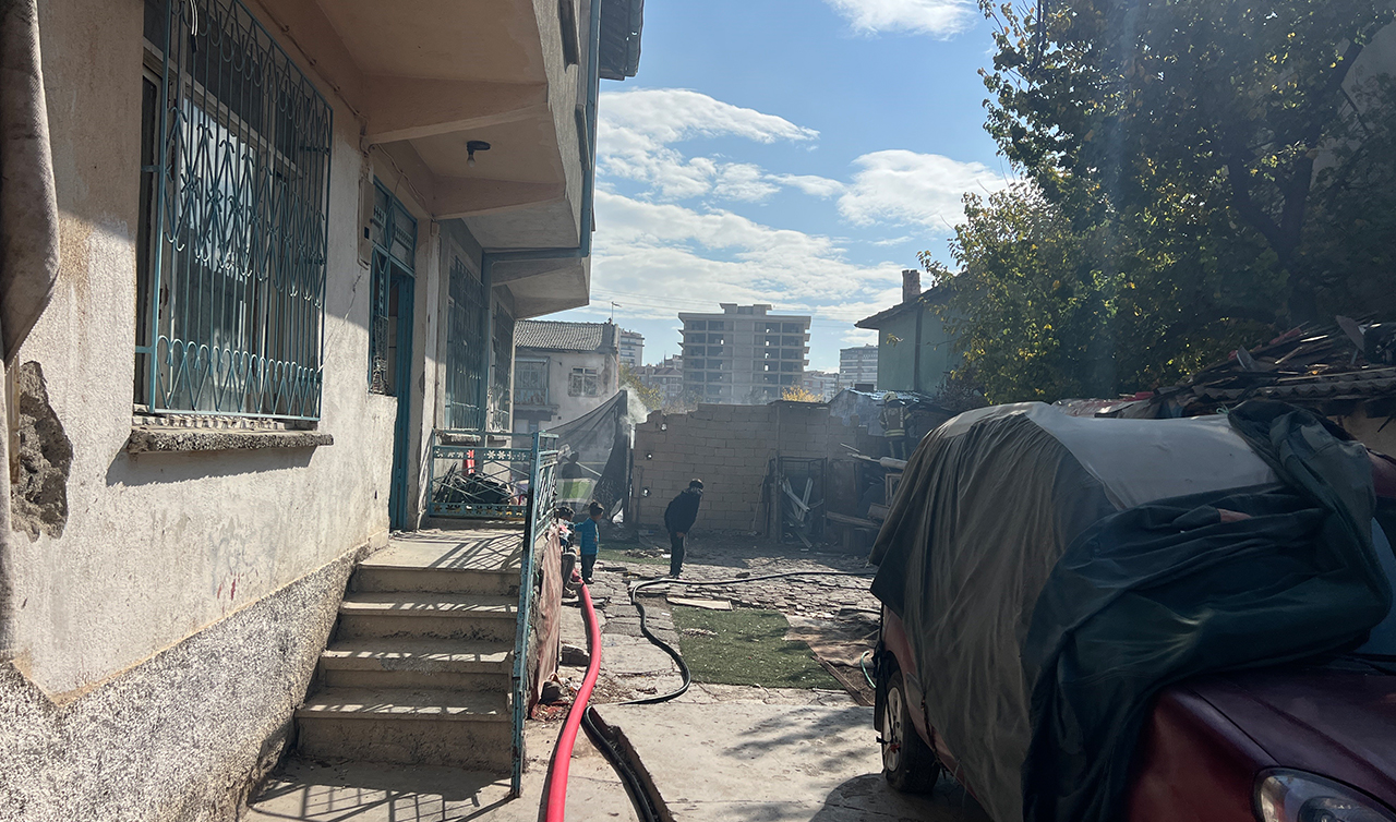 Polis ekipleri sokak üzerinde güvenlik önlemi alırken, itfaiye ekipleri yangına müdahale ederek yanında bulunan evlere sıçramadan söndürdü.