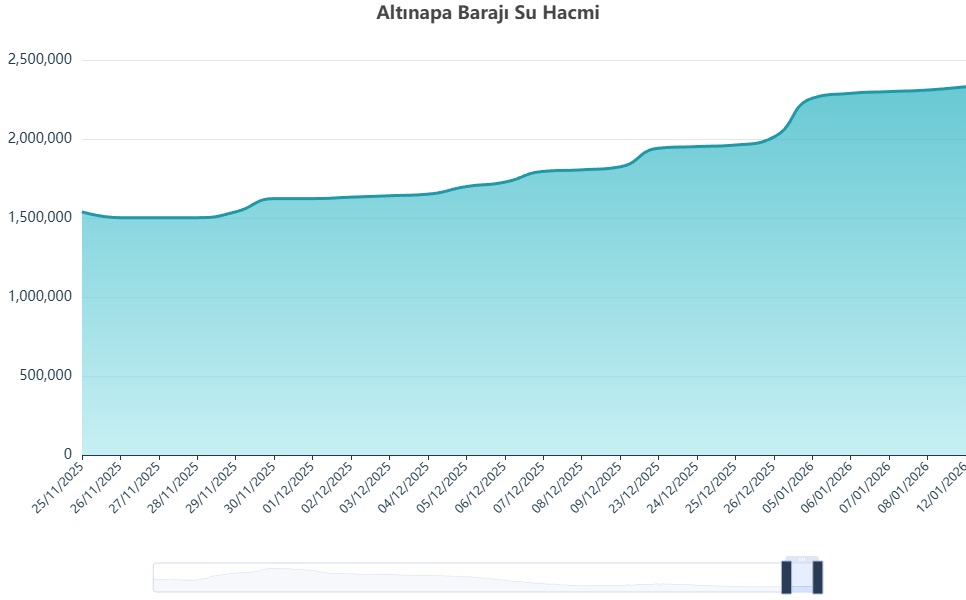 Ocak ayı itibariyle başlayan kar ve yağmur Altınapa'ya can suyu oldu. 2 milyon 331 bin metreküp suyu bulunan baraj şu anda yüzde ‘ten 7 seviyesine yükseldi. Yükseliş anında grafiğe yansıdı.