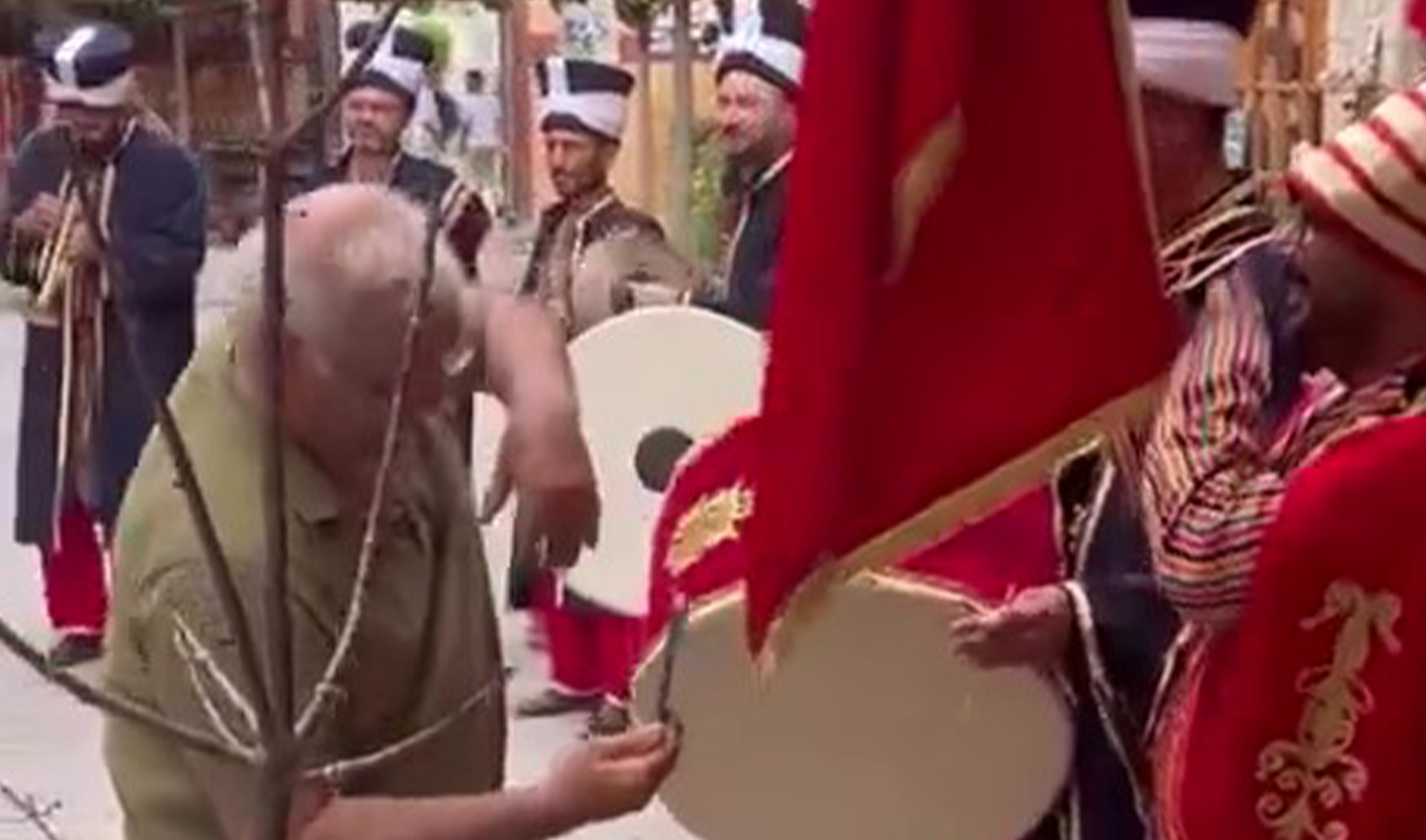 Mehter marşları eşliğinde ilerleyen gösteri sırasında fotoğraf çekmeye çalışan amca, zaman zaman ekip üyelerine fazlasıyla yaklaştı. Bu durum, özellikle davul ve zurna çalan mehteranların dikkatini dağıttı.