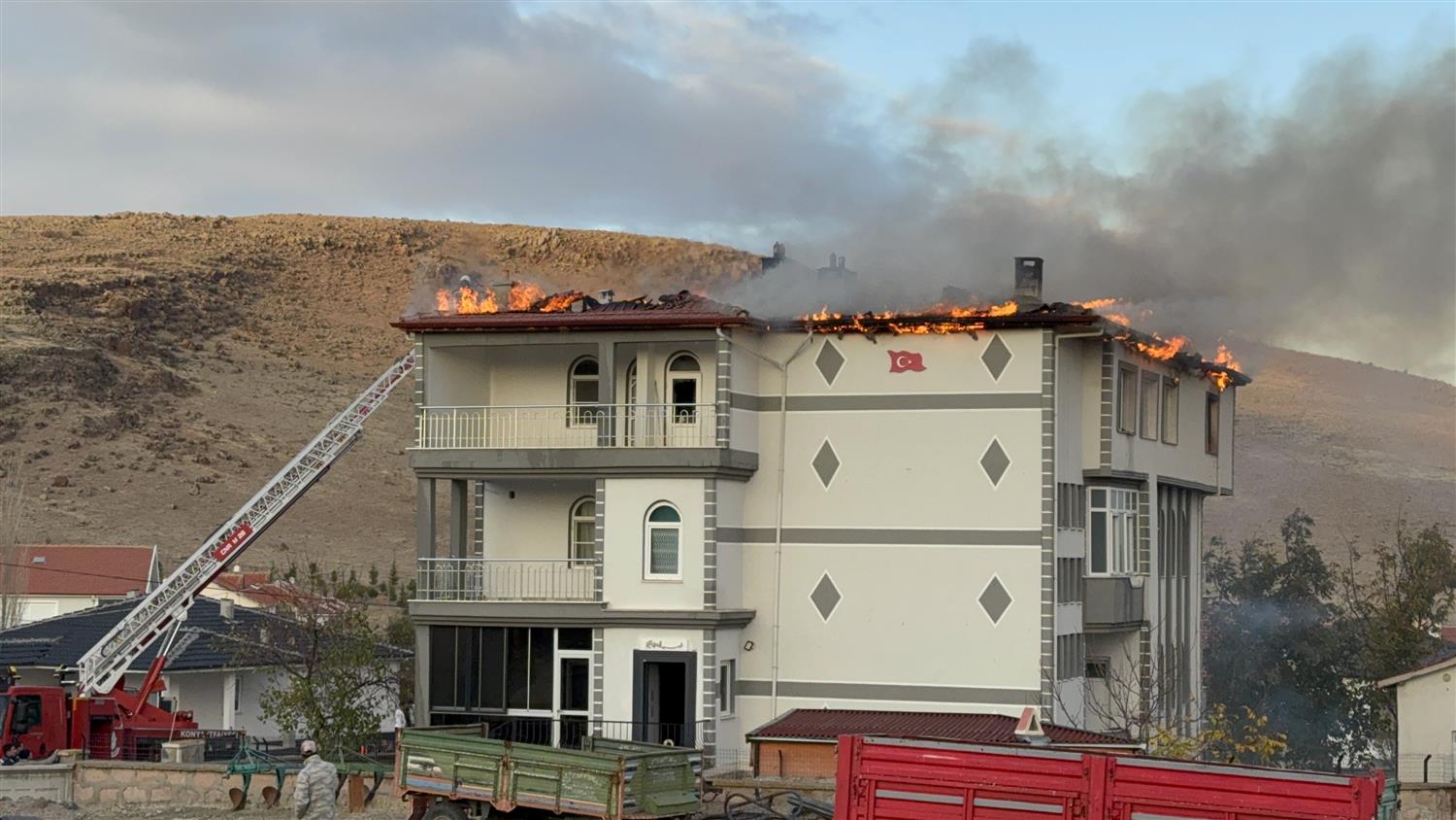 Kulu ilçesinde üç katlı bir evin çatısı alevlere teslim oldu. Ekiplerin müdahalesi ile söndürüldü.