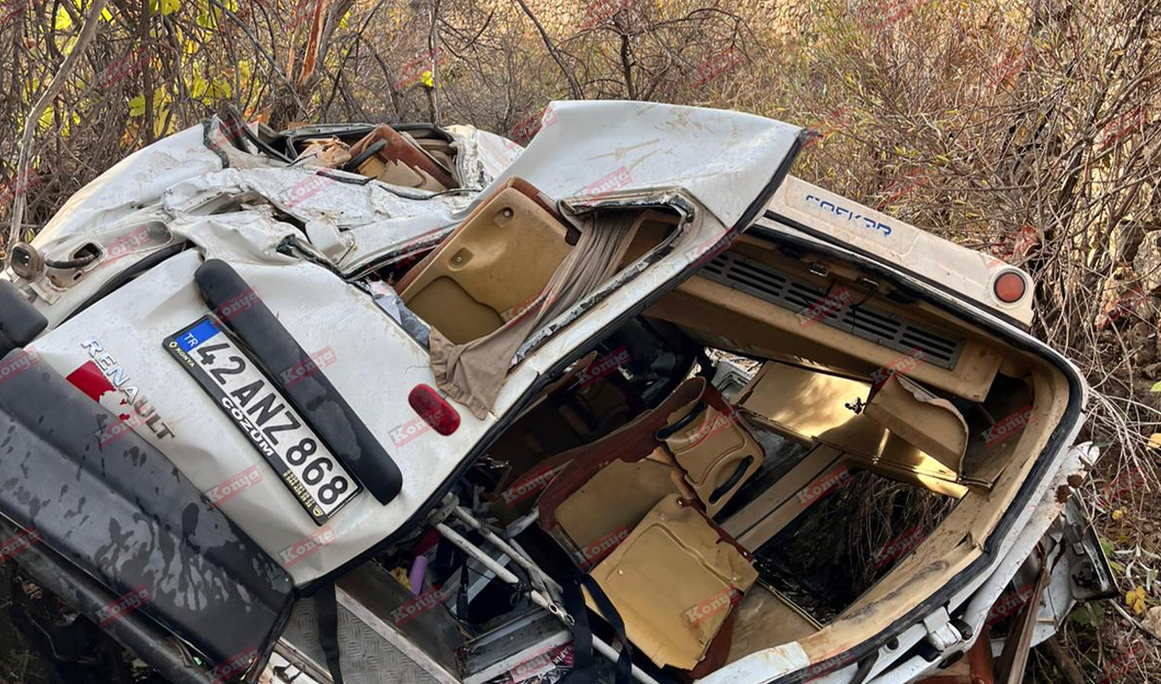 Dedemli Mahallesindeki öğrencileri Gezlevi Mahallesindeki okula taşıyan 42 ANZ 868 plakalı minibüs uçuruma yuvarlandı.