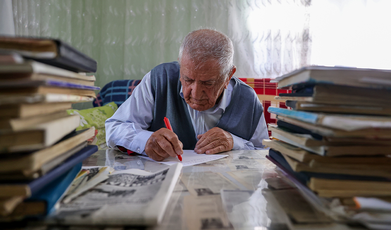 Önal, yaşına rağmen yazmaya devam ettiğini, şiirlerinin de yaşadığı ilçenin yerel gazetesinde her hafta yayımlandığını dile getirdi.
