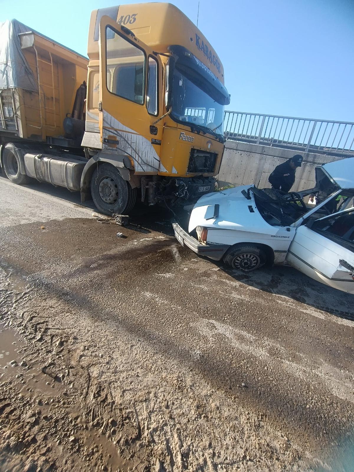 Edinilen bilgilere göre, seyir halindeki otomobil, alt geçitten geçmeye çalışan çekiciyle çarpıştı. Çarpmanın etkisiyle otomobil yaklaşık 200 metre boyunca sürüklendi. Kazanın şiddeti çevredeki vatandaşlar tarafından da fark edilirken, olay yerine çok sayıda ekip sevk edildi.