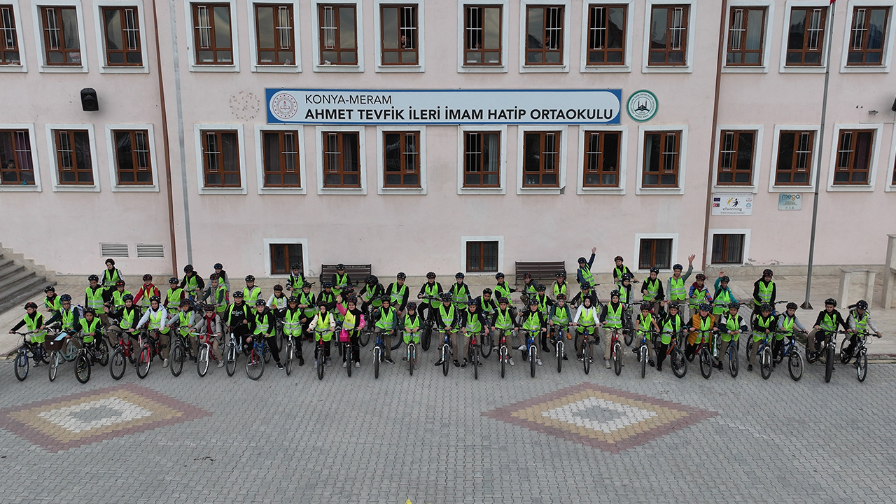 680 kilometre ile Türkiye'nin en uzun bisiklet yoluna sahip şehri Konya'da öğrenciler okula bisikletle gitmenin keyfini yaşıyor. Daha önce Güvenli Okul Yolları Projesi kapsamında eğitimlerin verildiği ve uygulamanın yapıldığı Ahmet Tevfik İleri İmam Hatip Ortaokulu'ndan yaklaşık 100 öğrenci sabahın erken saatlerinde bir araya gelerek okullarına çevreci ulaşım aracı bisikletle gidiyor. Konya Büyükşehir Belediyesi ekipleri tarafından verilen teorik ve uygulamalı eğitimlerden sonra belirlenen güzergah doğrultusunda gruplar halinde okullarına bisikletle ulaşan öğrenciler, hem spor yapmanın hem kolayı ulaşımın mutluluğunu yaşıyor.