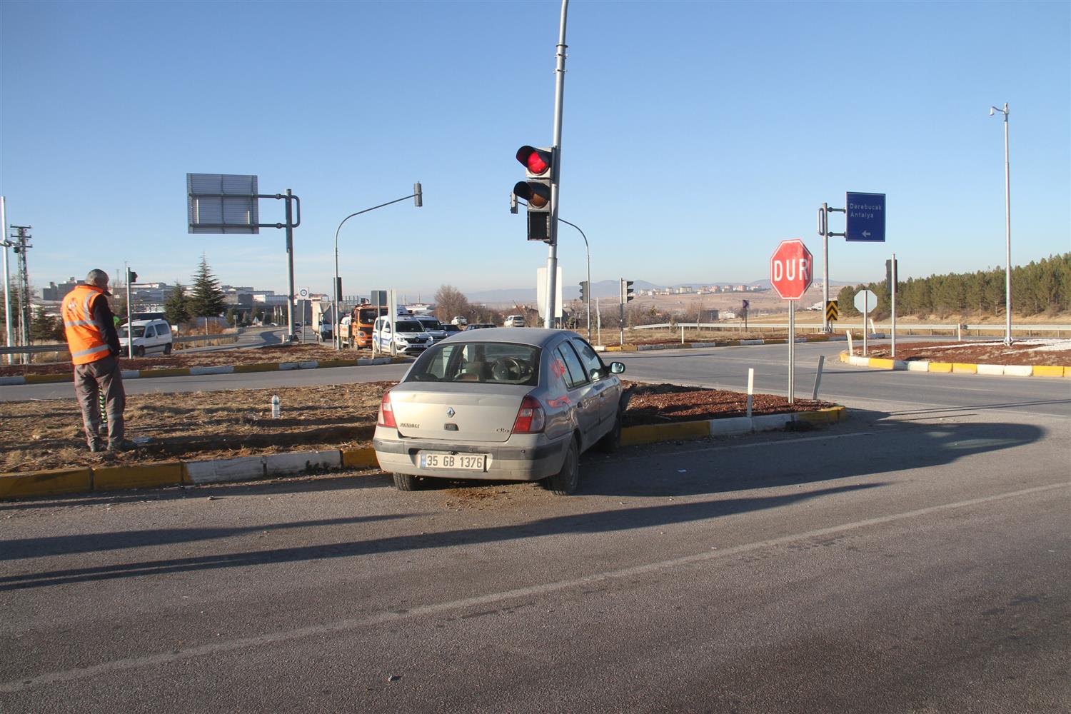 Abdurrahman Ö. idaresindeki 35 GB 1376 plakalı otomobil çevre yolunda seyir halindeyken kontrolden çıkarak refüjdeki trafik ışığı direğine çarptı.