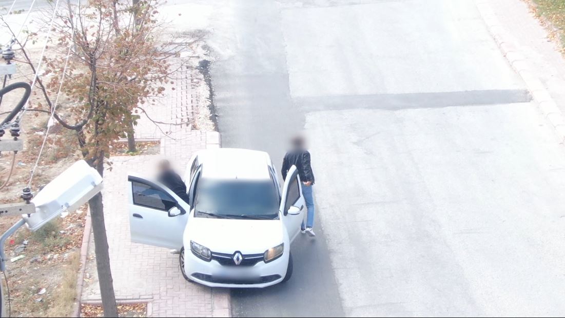 Uygulama sırasında, beyaz renkli bir aracın denetim noktasına yaklaşmadan yol üzerinde durduğu fark edildi. Aracın yol kenarına çektiğini fark eden İHA ekipleri aracı takibe aldı. Dron kamerasıyla izlenen araçta, sürücü konumundaki A.E. ile sağ ön yolcu koltuğundaki N.J.S. isimli kadının hızlıca yer değiştirdiği görüldü.