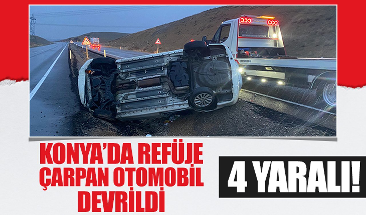 Konya’da refüje çarpan otomobil devrildi: 4 yaralı!