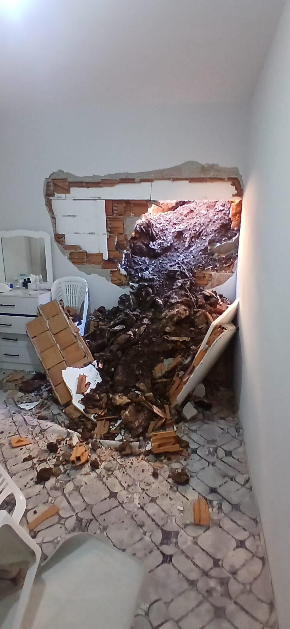 Aşırı yağışlar nedeniyle meydana gelen toprak kayması sonucu evin içine toprak dolarken, duvarlarda yıkılma meydana geldi ve eşyalar zarar gördü. Olayda herhangi bir can kaybı ya da yaralanma yaşanmazken, evde ciddi maddi hasar oluştu.