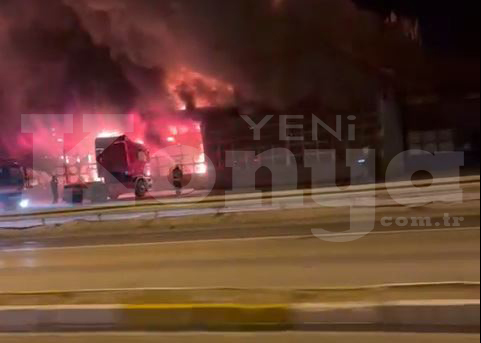 Konya'nın Ereğli ilçesinde gece saatlerinde sanayi sitesi karşısında büyük çaplı yangın meydana geldi.