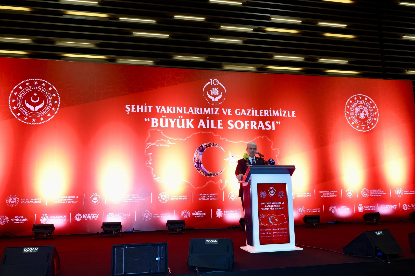 Konya'da Selçuklu Kongre Merkezi'nde "Şehit Yakınlarımız ve Gazilerimizle Büyük Aile Sofrası" adıyla düzenlenen iftar programı, Kur'an-ı Kerim tilavetiyle başladı.