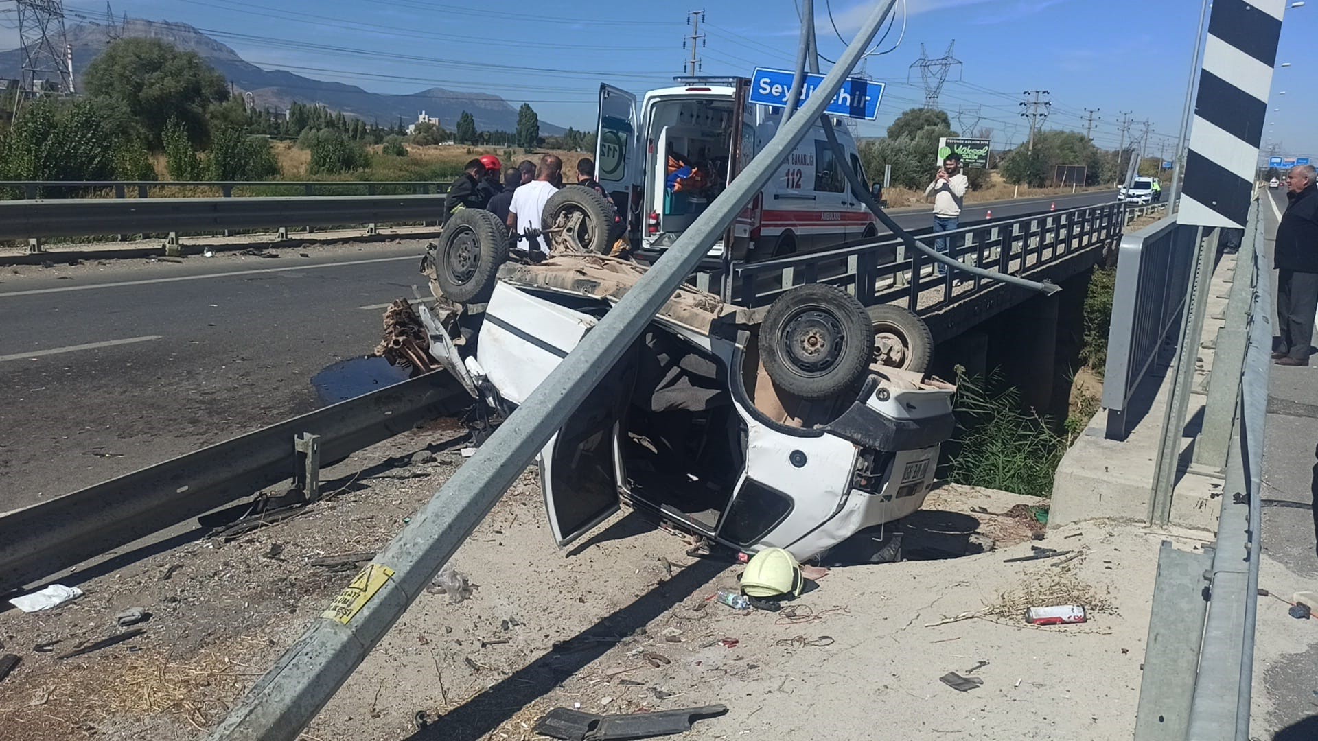 Konya’da takla atan otomobil direğe ve bariyerlere çarptı: 2 yaralı!