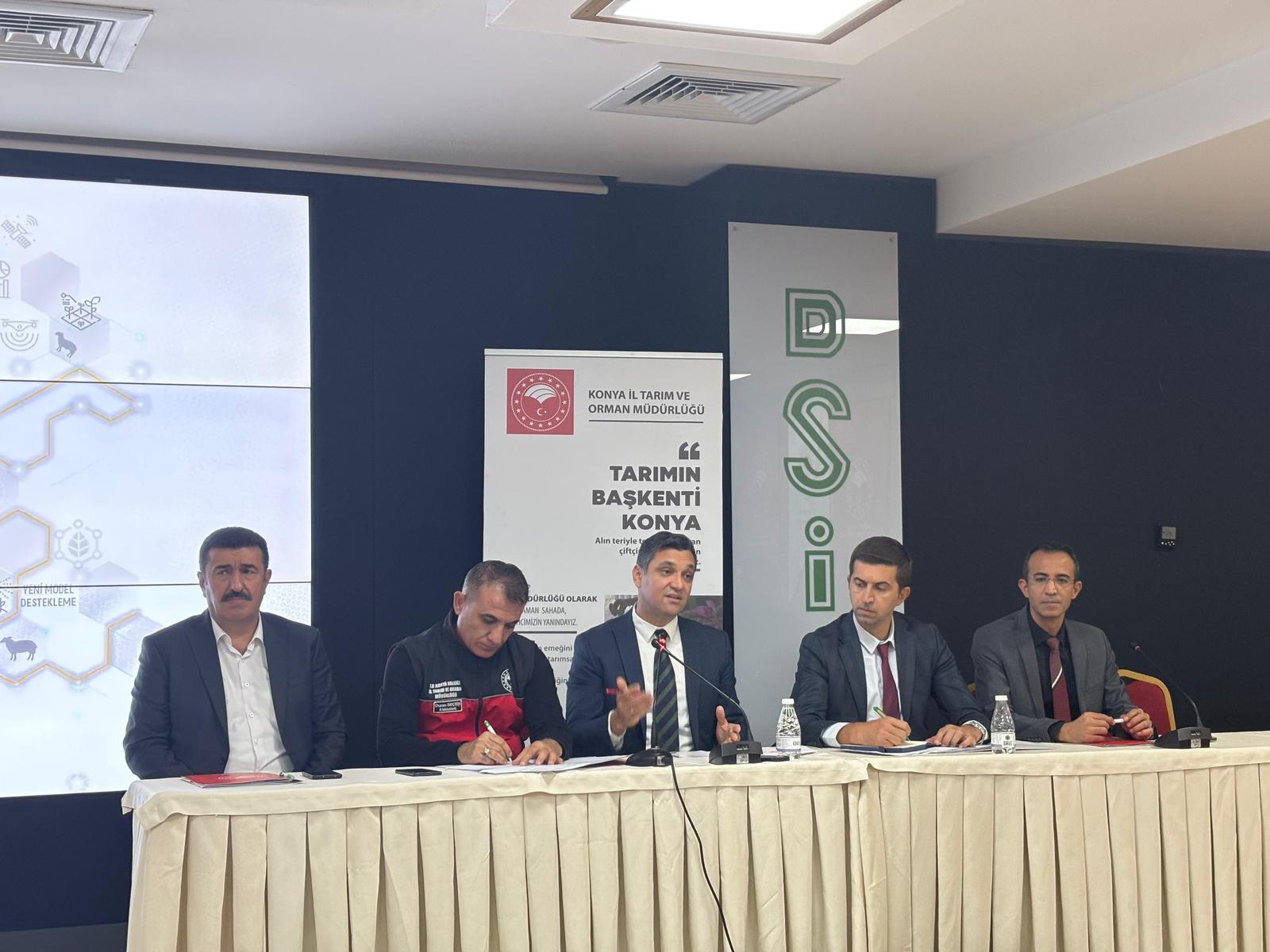 Konya'da gerçekleştirilen Tarımsal Üretim Planlaması Değerlendirme Toplantısı, Tarım ve Orman Bakanlığı Tarım Reformu Genel Müdürlüğü Tarım Havzaları Daire Başkanı Dr. Emre Yeniay'ın katılımıyla düzenlendi.