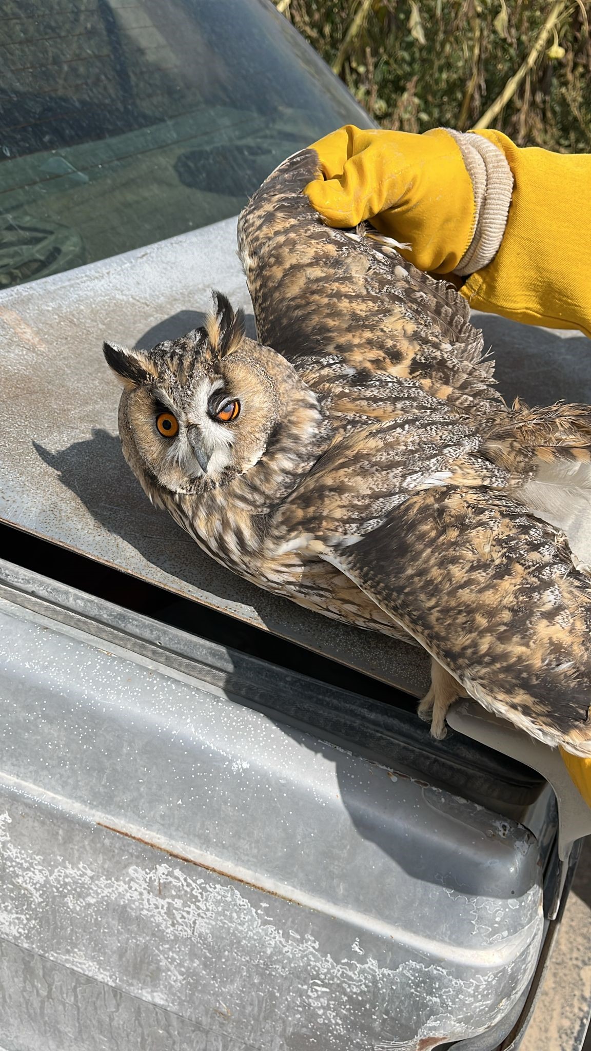 Karapınar ilçesine bağlı Seyithacı Yaylası'nda, mısır tarlasında çalışan çiftçi Muhammet Baldanoğlu, mısırların arasında hareketsiz haldeki yaralı kulaklı baykuşu fark etti. Baldanoğlu, durumu hemen Doğa Koruma ve Milli Parklar ekiplerine bildirdi.
