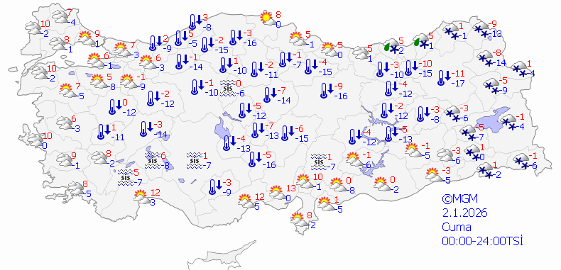 Yeni yılın ikinci günü olan 2 Ocak Cuma itibarıyla Konya, kuvvetli bir soğuk hava dalgasının etkisi altına giriyor. Özellikle yüksek kesimlerde ve bazı ilçelerde hava sıcaklıklarının -20 dereceye kadar düşmesi bekleniyor. Yetkililer, don ve buzlanma riskine karşı vatandaşları dikkatli olmaları konusunda uyardı.