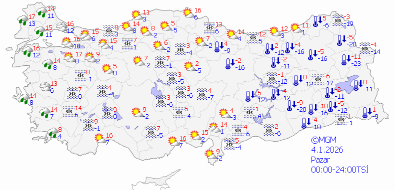 Soğuk havanın etkisi birkaç gün sürerken, 4 Ocak Pazar günü itibarıyla hava sıcaklıklarında kademeli bir artış bekleniyor.