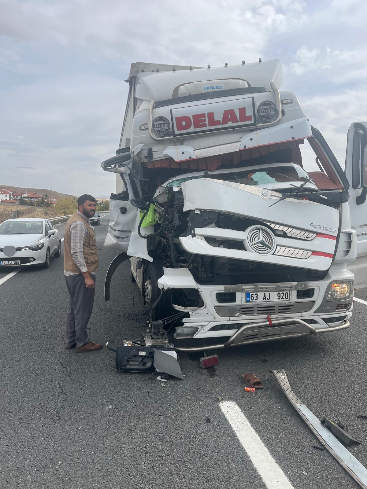 Edinilen bilgiye göre, karayolunda seyir halinde olan sürücüsünün ismi alınamayan 63 AJ 925 plakalı tır, önünde seyreden başka bir tırın dorsesine arkadan çarptı.