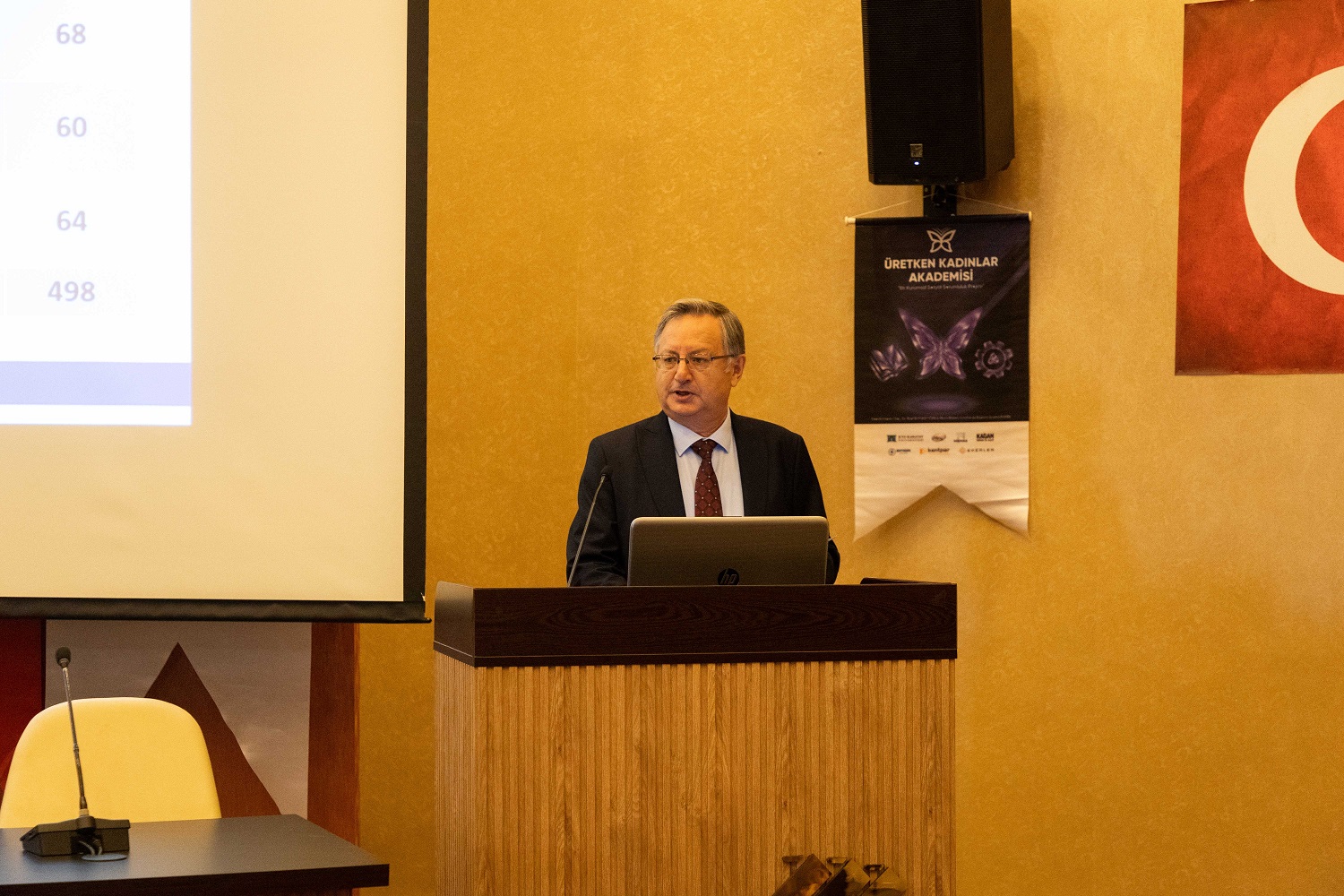 Törenin açılış konuşmasını yapan KTO Karatay Üniversitesi Rektörü Prof. Dr. Fevzi Rifat Ortaç; "2025 yılı ülkemizde ‘Aile Yılı' olarak ilan edildi. Bu yıl, ailenin korunması ve güçlendirilmesine yönelik çeşitli etkinlikler ve projeler hayata geçirildi. Biz de KTO Karatay Üniversitesi olarak Aile Yılı'nda ailenin temel direği olan kadınlar için bir proje ortaya koyduk. ‘Üretken Kadınlar Akademisi Sosyal Sorumluluk Projesi'ni sürekli hale getirmek, kadına ilişkin her türlü etkinlikte yer almak bizim görevimizdir. KTO Karatay Üniversitesi olarak, sosyal sorumluluk projelerinin içerisinde sonuna kadar varız. Proje kapsamında verilen eğitimler ve bu eğitimlerin tamamlanması çok kıymetli. Biz, kadınların sorunlarını ne kadar fazla çözersek, onların gelişimine katkı sağlayıp mutlu edersek, onların yetiştireceği evlatlar ve toplum daha mutlu olacaktır. Bu değerli projeye katkı sunan tüm kurumlara, akademisyenlerimize ve emeğiyle sürece güç katan kursiyerlerimize teşekkür ediyorum” şeklinde konuştu.