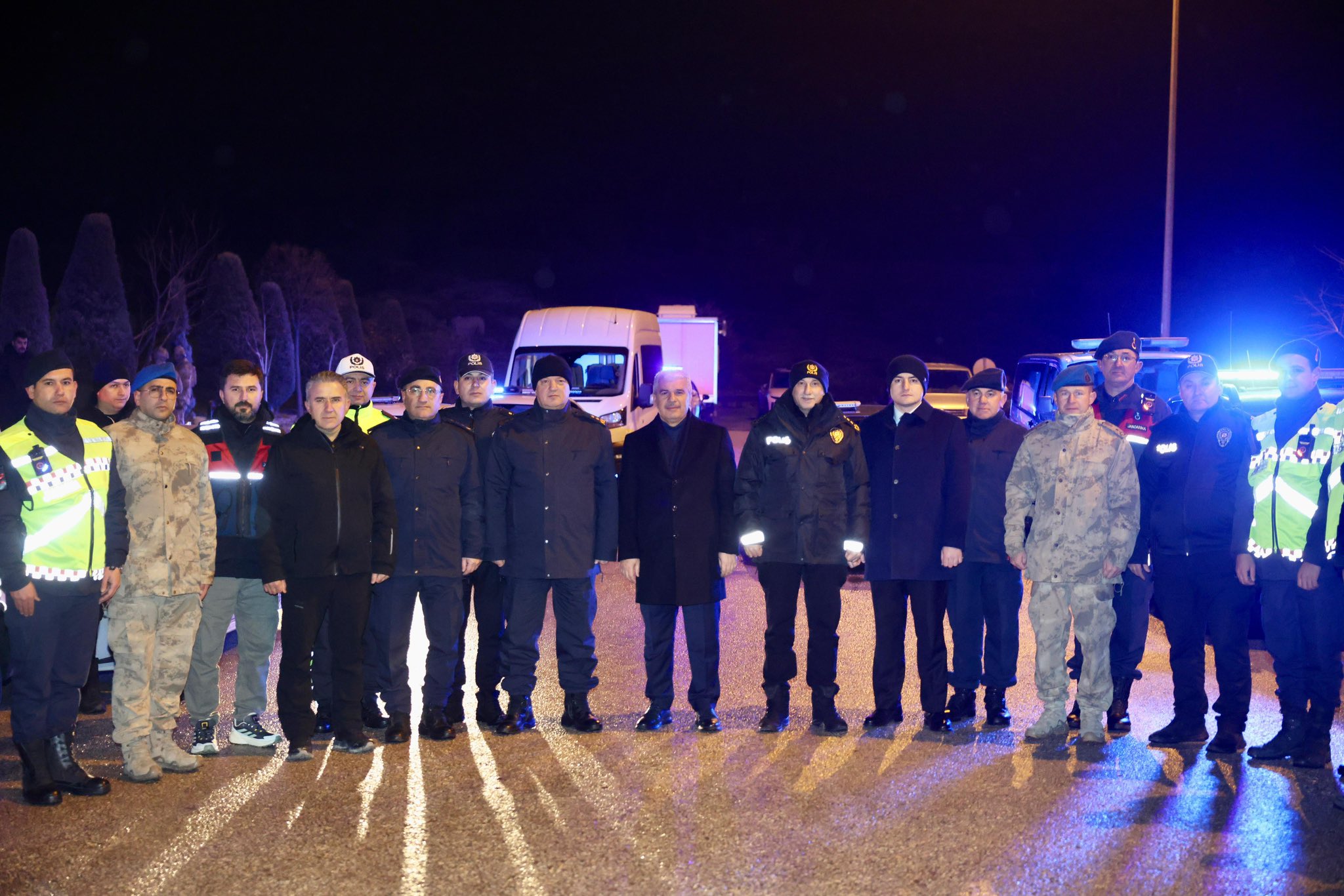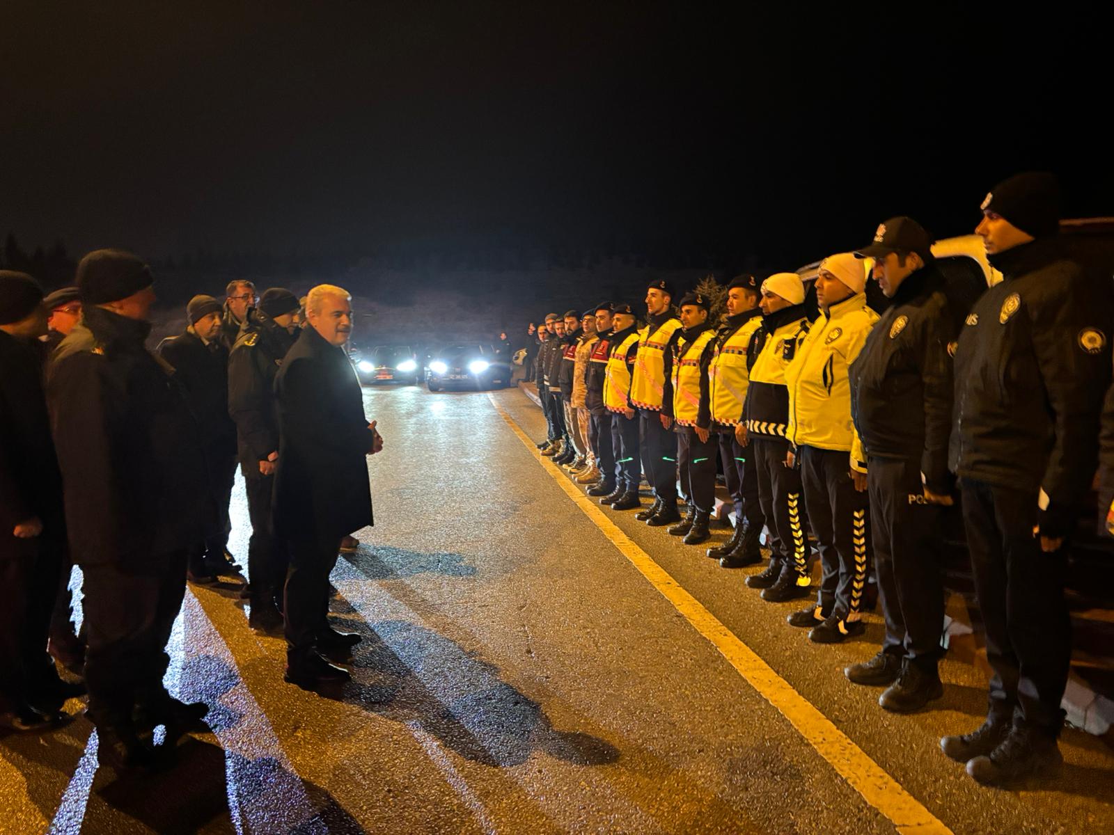 Konya Valisi İbrahim Akın, İl Emniyet Müdürü Maksut Yüksek ve İl Jandarma Komutanı Tümgeneral Cemil Lütfi Özkul, yılbaşı gecesinde Konya–Antalya yolundaki uygulama noktasında görev yapan emniyet ve jandarma personelini ziyaret etti.