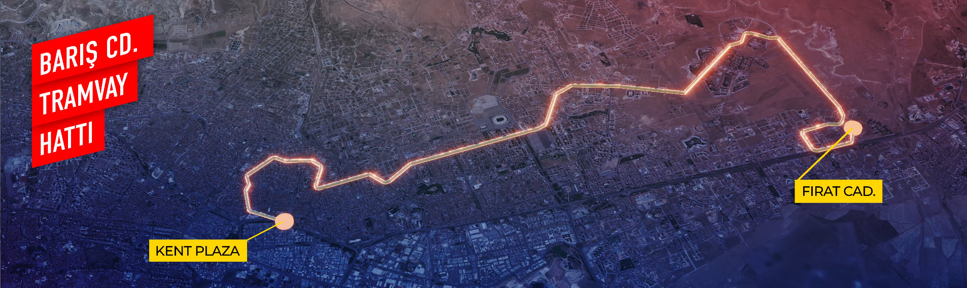 "Barış Caddesi Tramvay Hattı, 13,85 kilometre uzunluğunda olacak ve 18 durağıyla ilk etapta 88 bin kişiye hizmet verecek. Hattımız Fırat Caddesi'nden başlayarak Beyhekim Hastanesi, Beyhekim Caddesi, Barış Caddesi, Güzeldere Caddesi, Demirhan Caddesi ve Hadimi Caddesi güzergâhından Kent Plaza'ya, oradan da YHT Garı'na ulaşacak.”