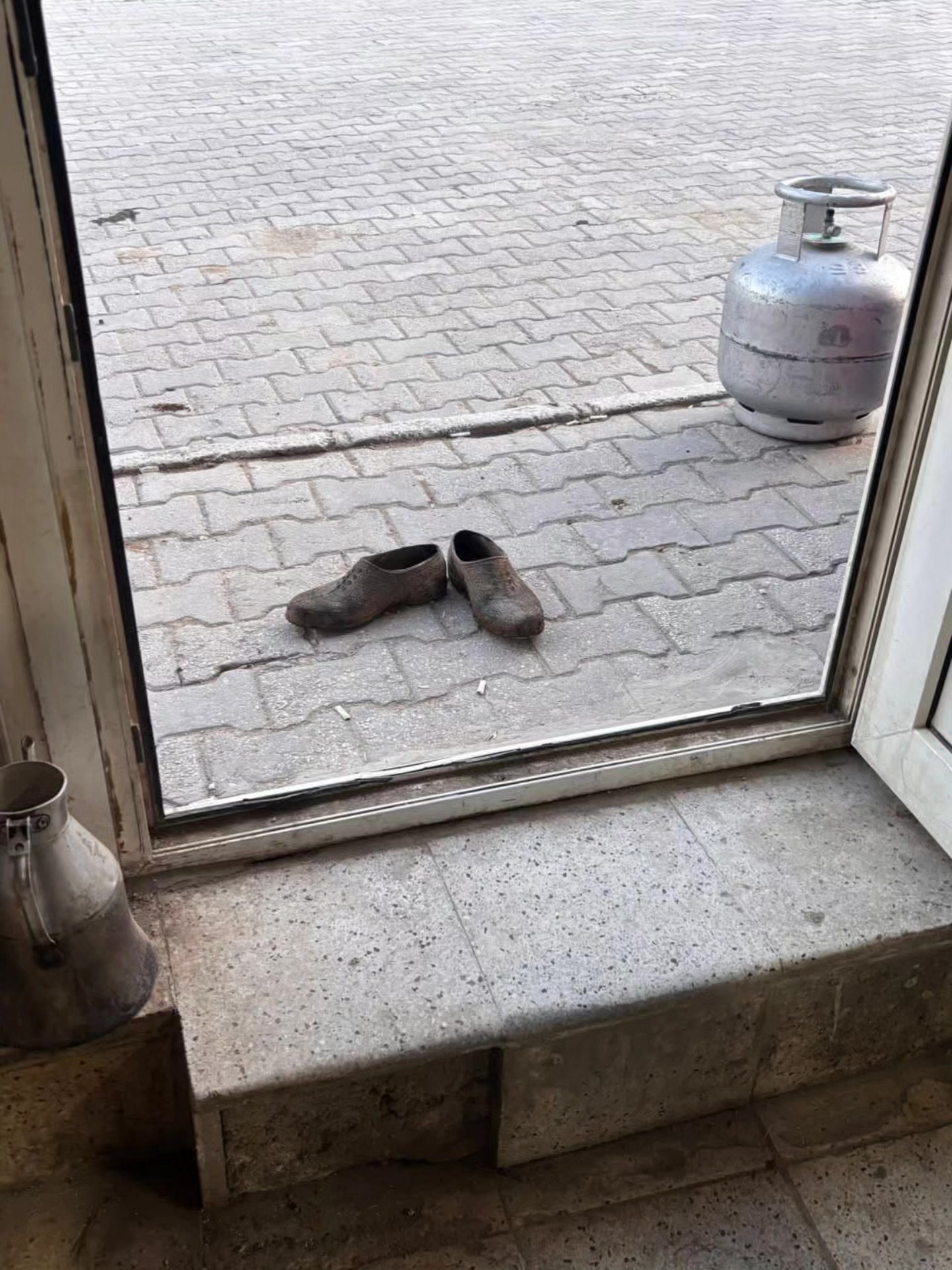 Mahallede bulunan bir markete alışveriş yapmak için gelen çiftçi bir vatandaş, işten geldiği için ayakkabılarının çamurlu olduğunu fark etti. İş yerinin kirlenmemesi adına duyarlı bir davranış sergileyen vatandaş, ayakkabılarını çıkararak markete girdi.