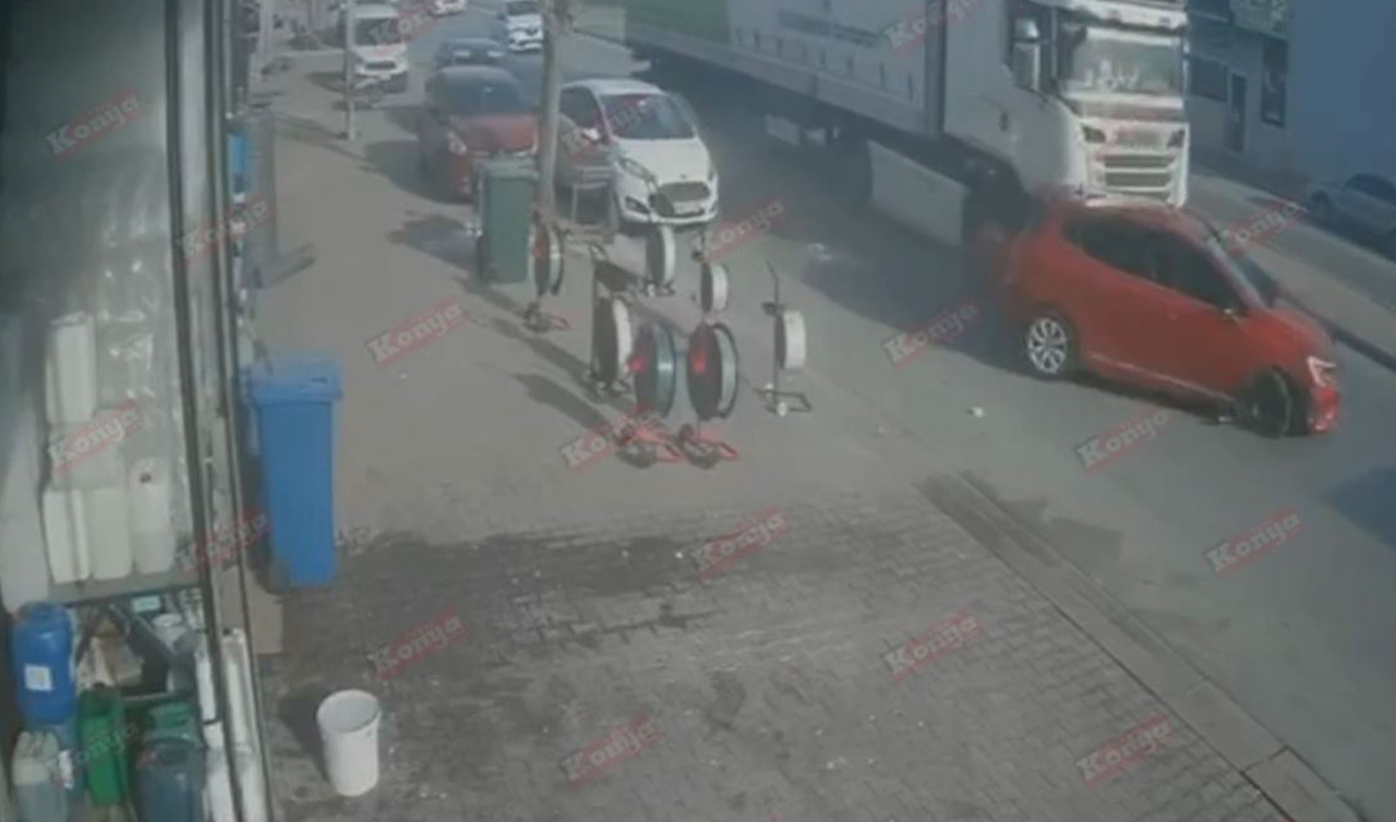 Hurdalık istikametinden Şekerciler Kavşağı'na seyreden otomobil, park halindeki otomobille ardından da yanında seyreden tırla çarpıştı.