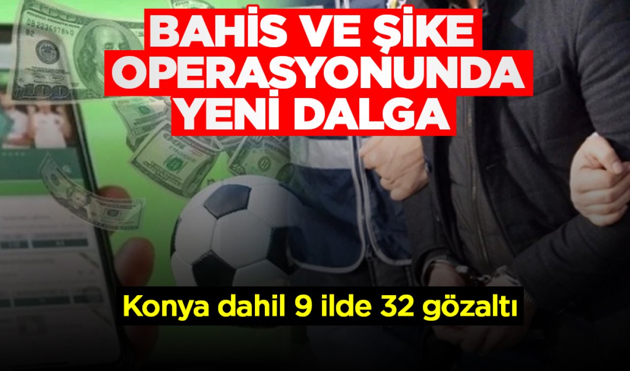 İstanbul merkezli Konya dahil 9 ilde düzenlenen bahis operasyonunda 32 şüphelinin yakalandığı bildirildi. Operasyon, ülkede faaliyet gösteren yasal bahis sitelerinde yönetici olarak görev aldığı süre zarfında, rakip lehine oynanan bahisler, gol içerikli bahisler (alt-üst), oyuncu yönünden oynanan bahisler kapsamında kuponu olan şahıslara yönelik gerçekleştirildiği öğrenildi.