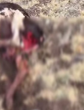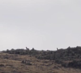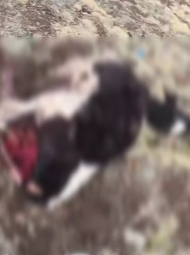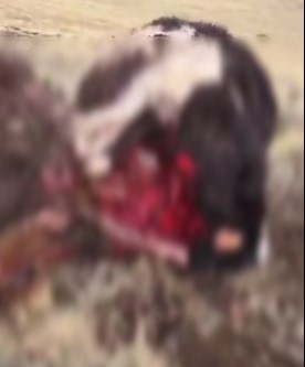 Yaklaşık 2 kilometre uzaklıktan cep telefonuyla kaydedilen görüntülerde, kurtların ineği parçaladığı anlar net bir şekilde görüldü.