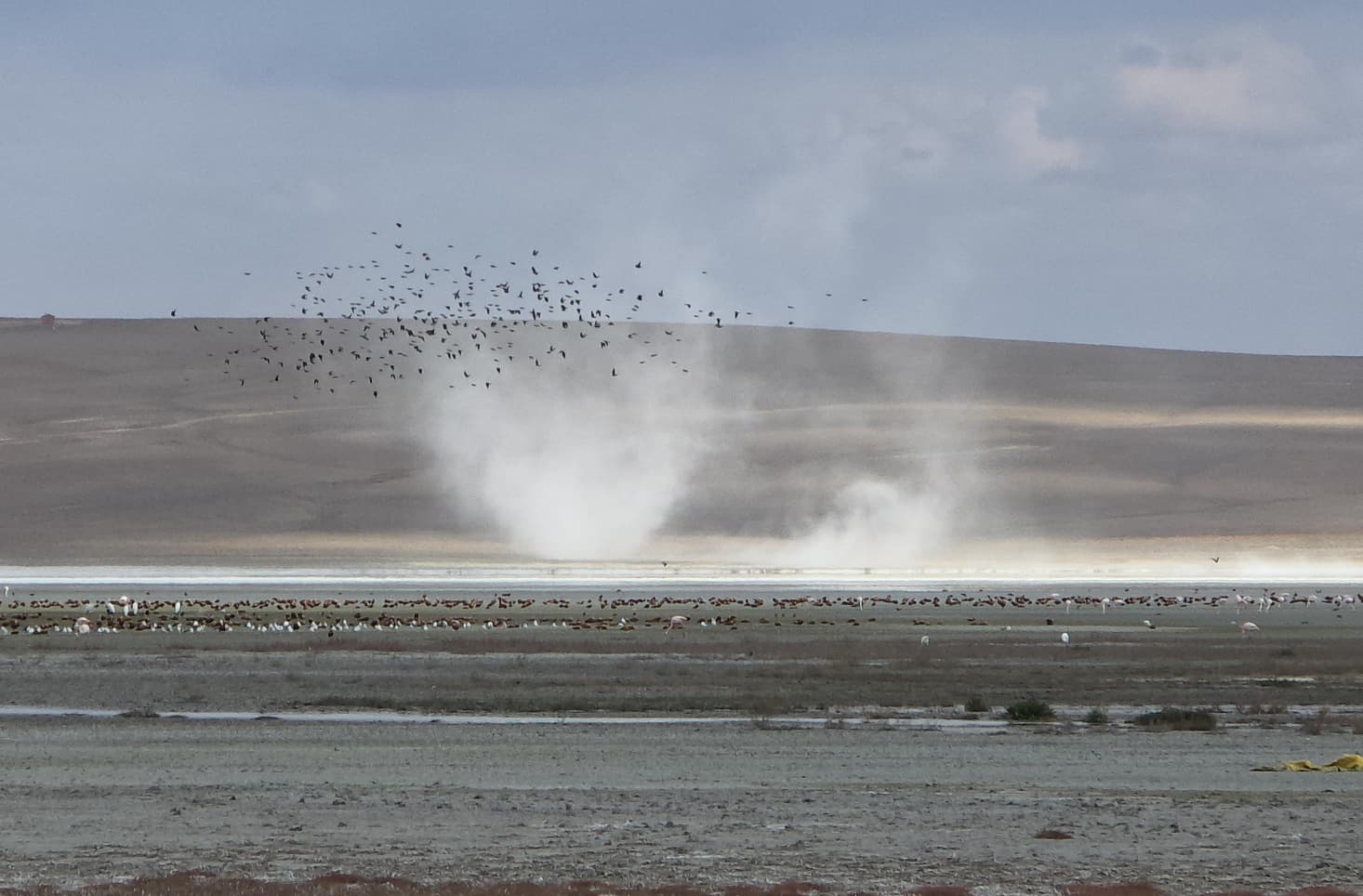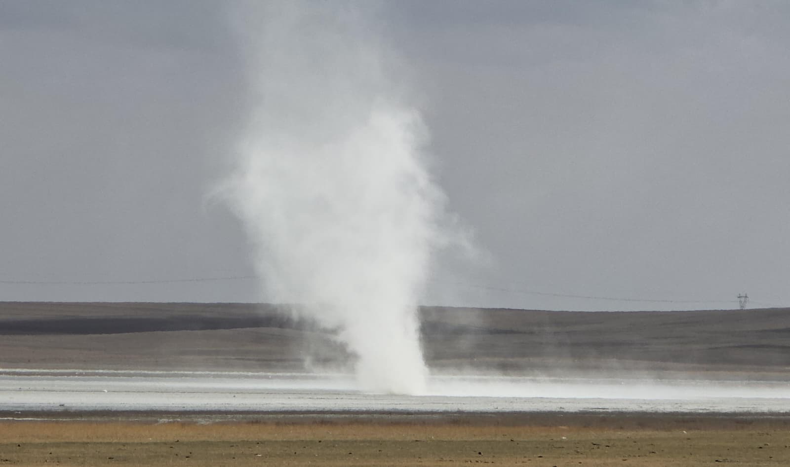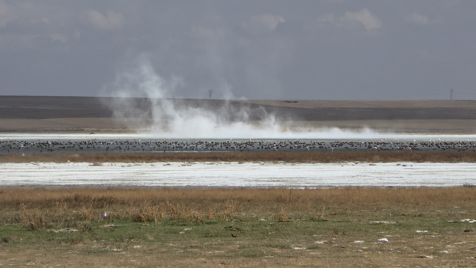 Gölün beyaz renkli tuzlu zemininde rüzgarında etkisiyle oluşan küçük hortumlar dikkat çekti.